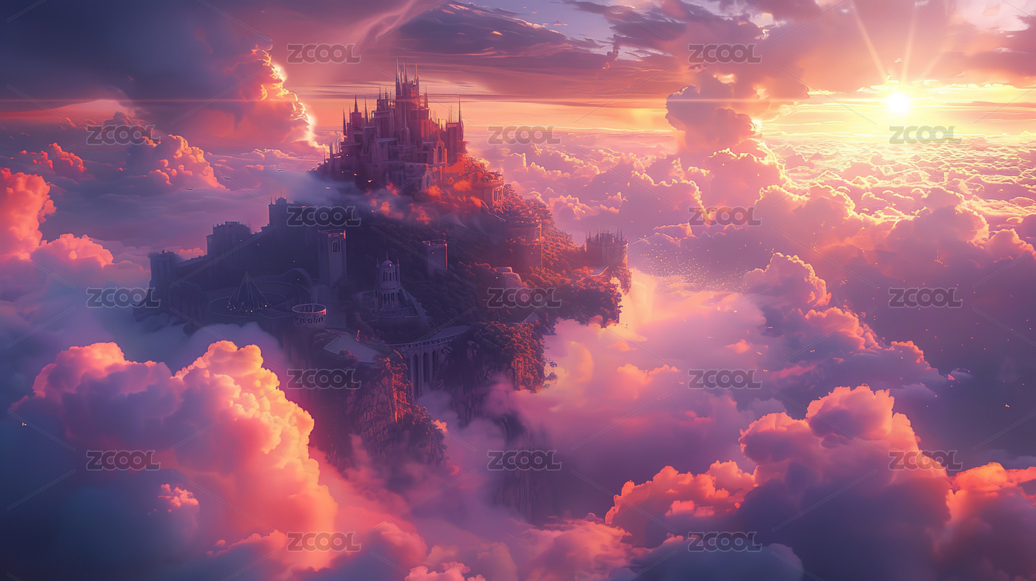 云海之上的城堡日落