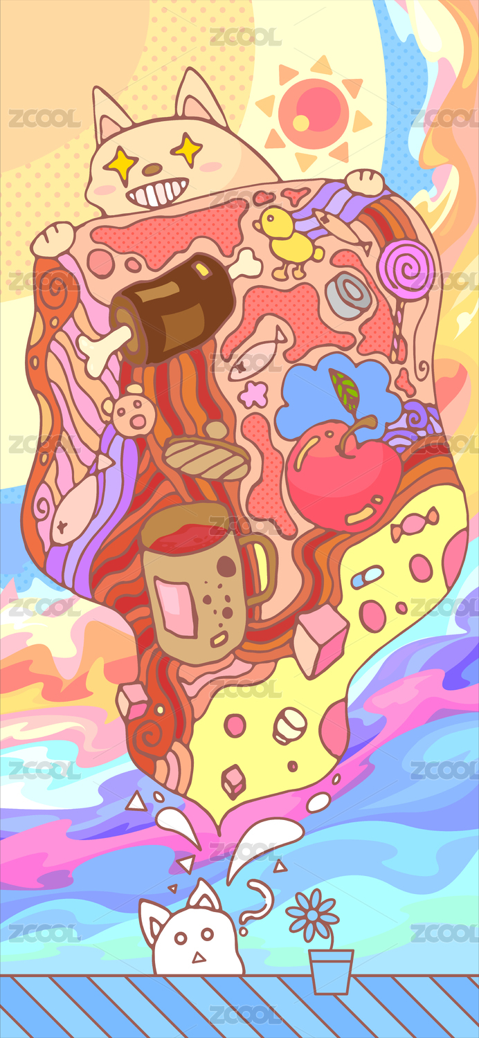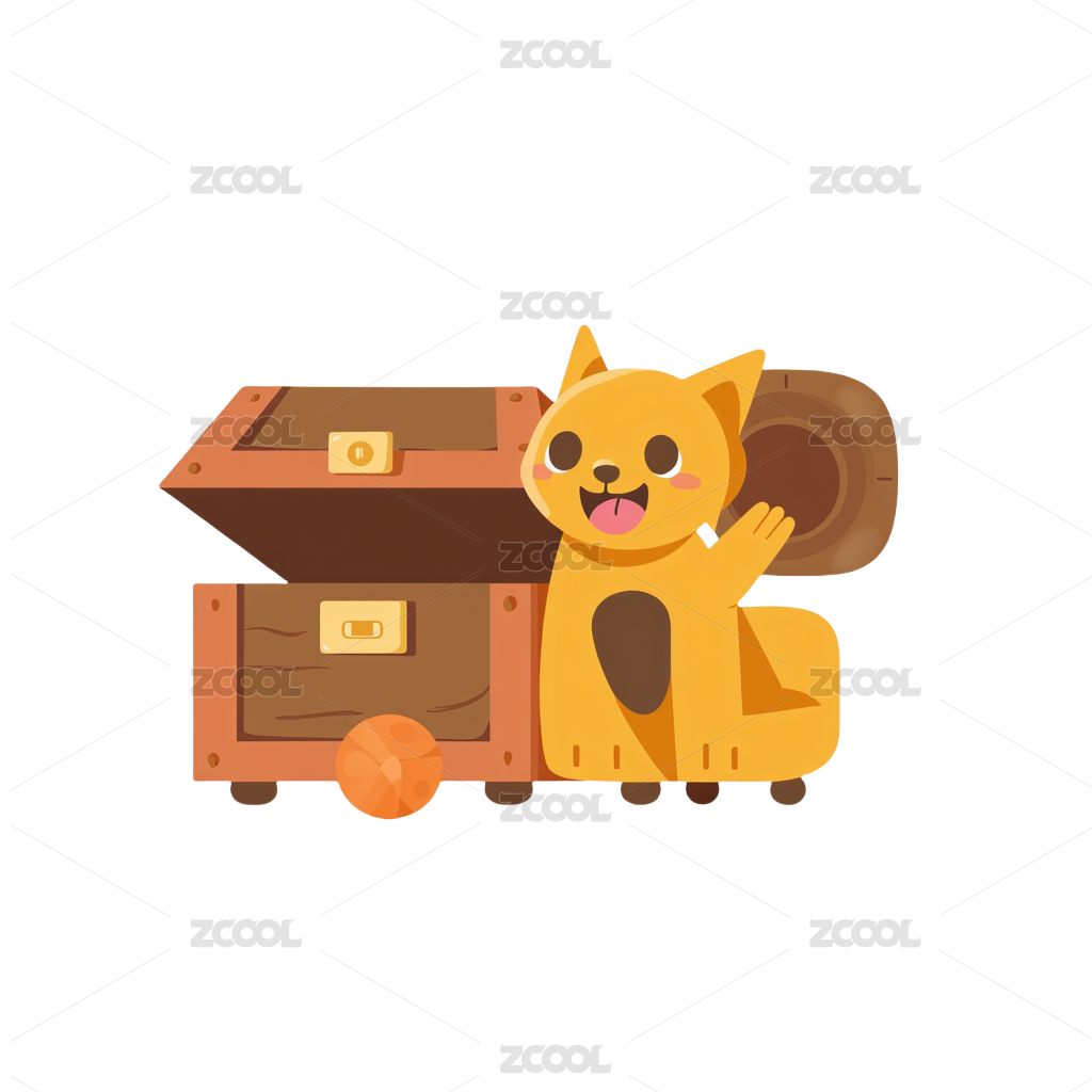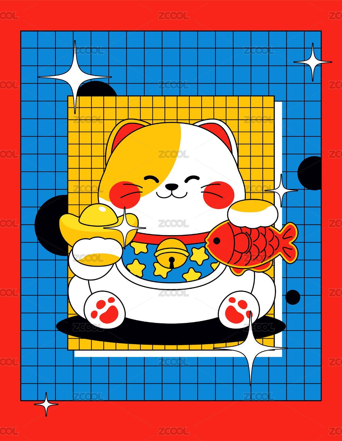 低面多边形萌宠猫玩具模型3D立体卡通插画