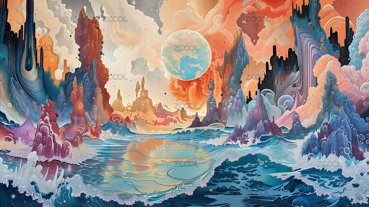 手绘唯美的抽象艺术感夜晚天空风景插画