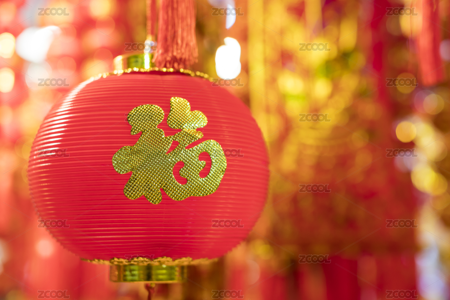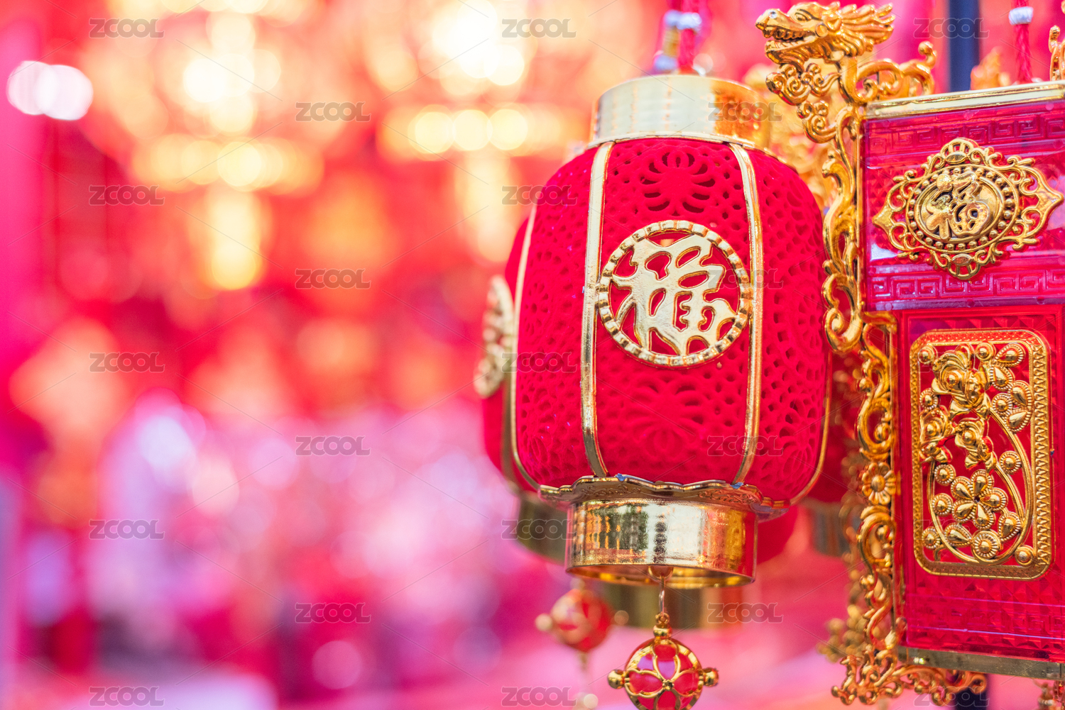 春节气氛浓重的桃花和灯笼等物品组成的节日场景