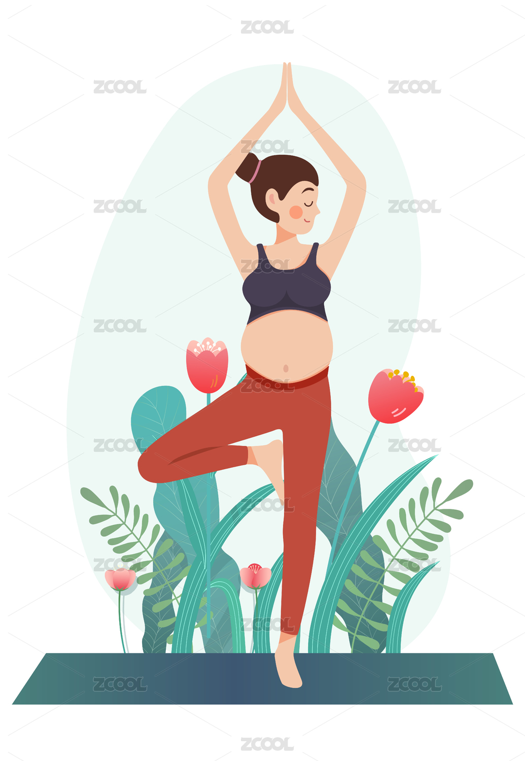 女子瑜伽运动之孕妇瑜伽动作矢量素材