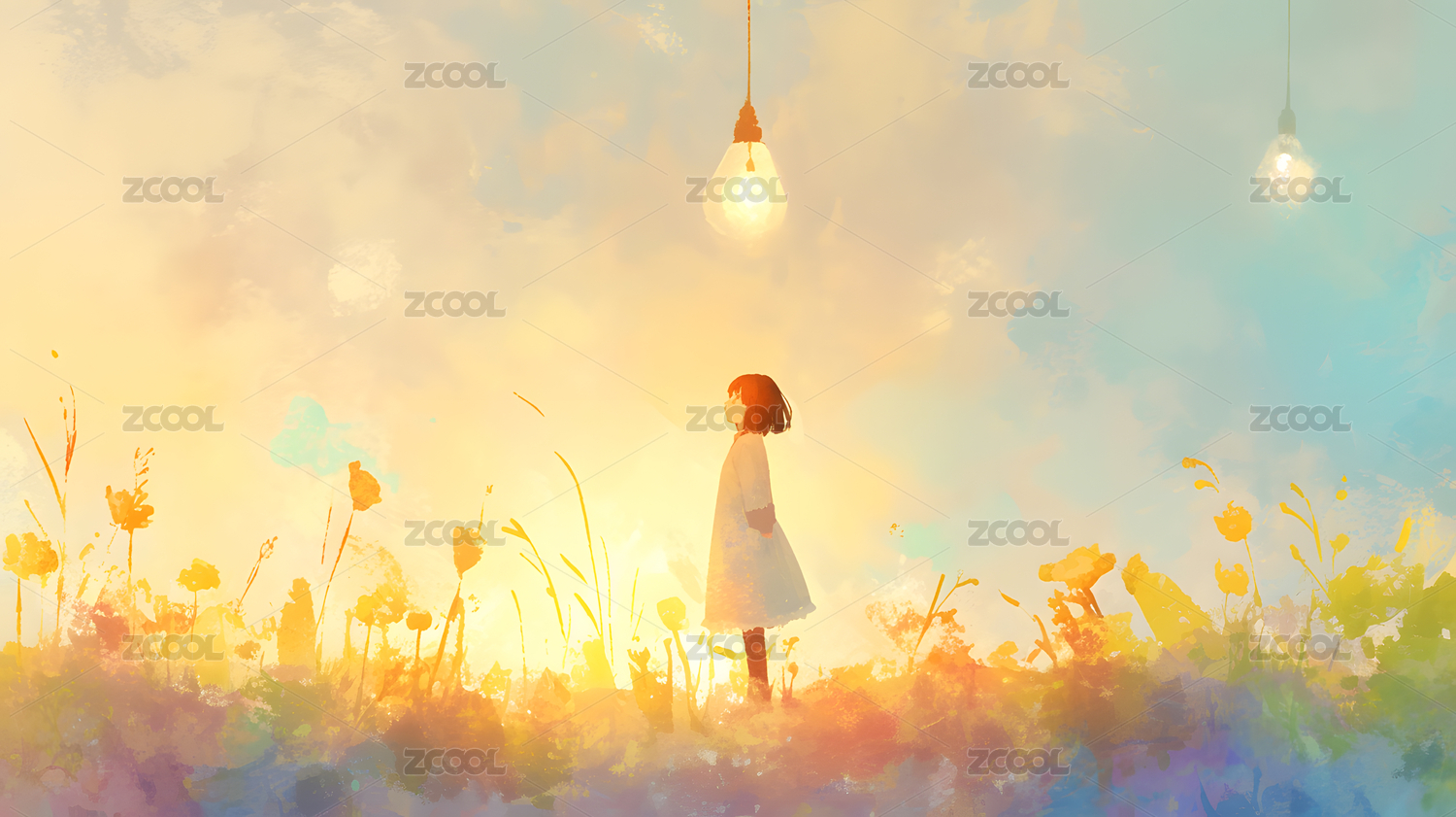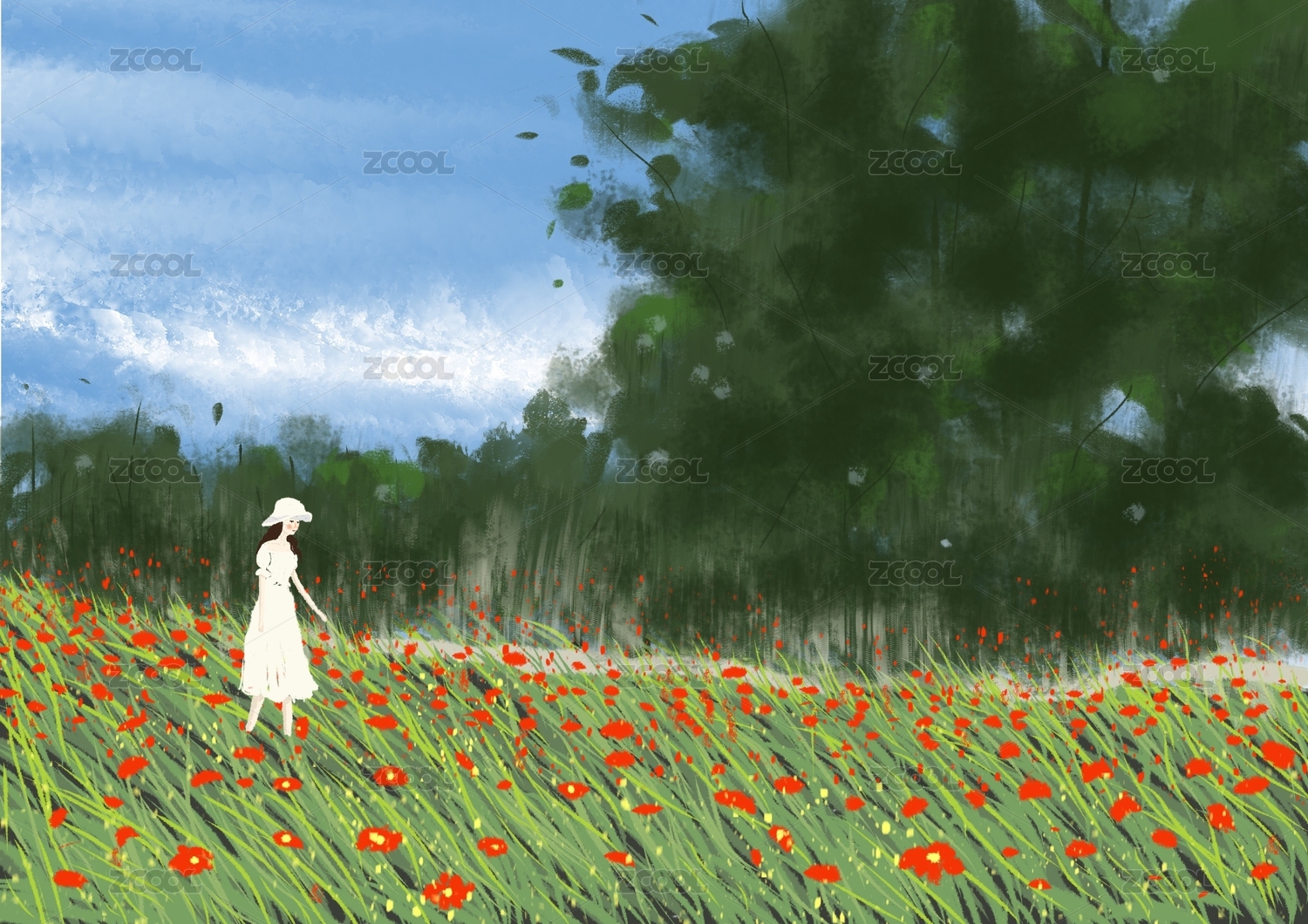 天空,草地,草,云,鹿,油菜花,姑娘,菜籽油,草原,菜子