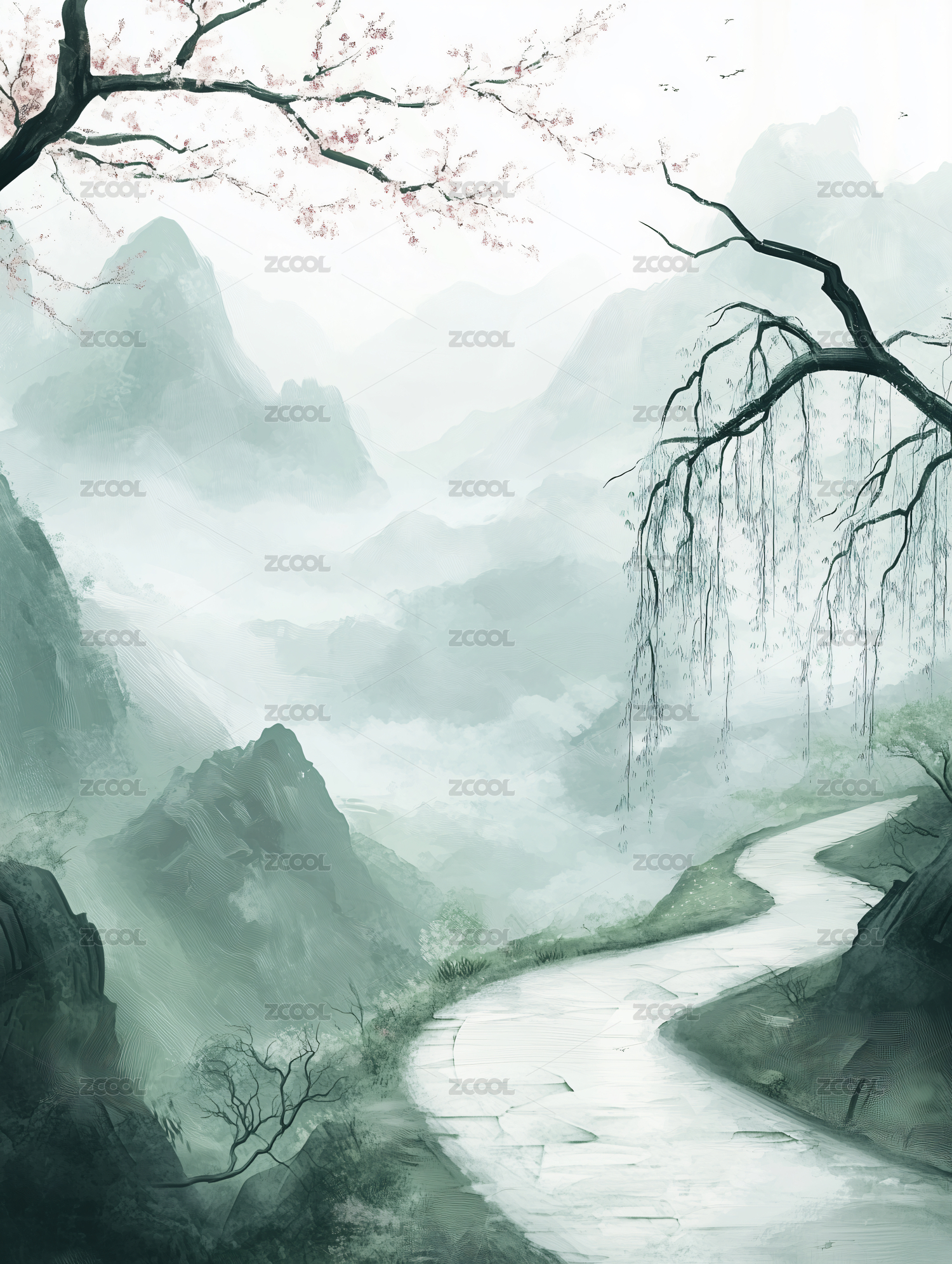 AIGCFG,水墨,古风,复古,风景,水墨风,山脉,溪流,高山,流水