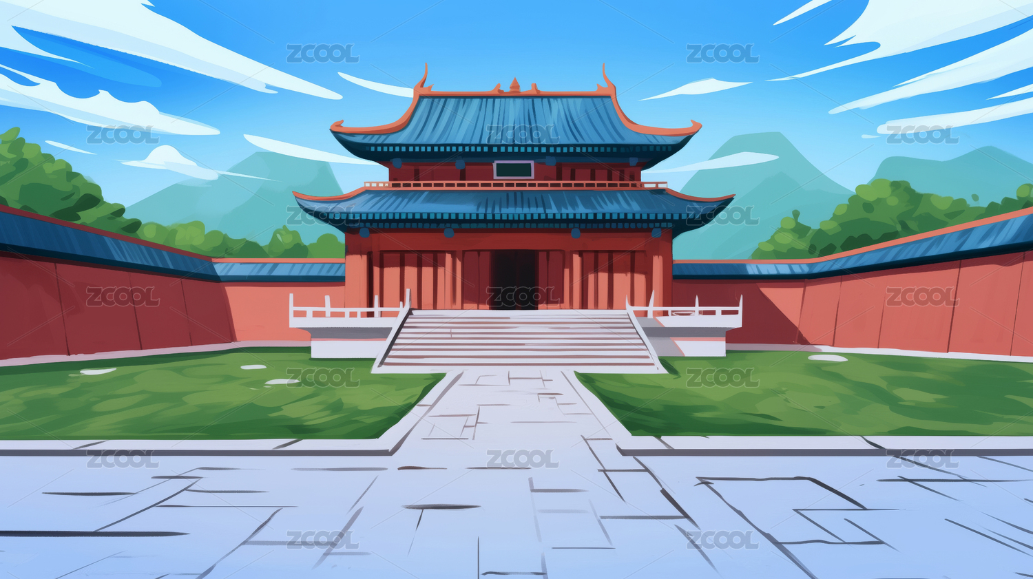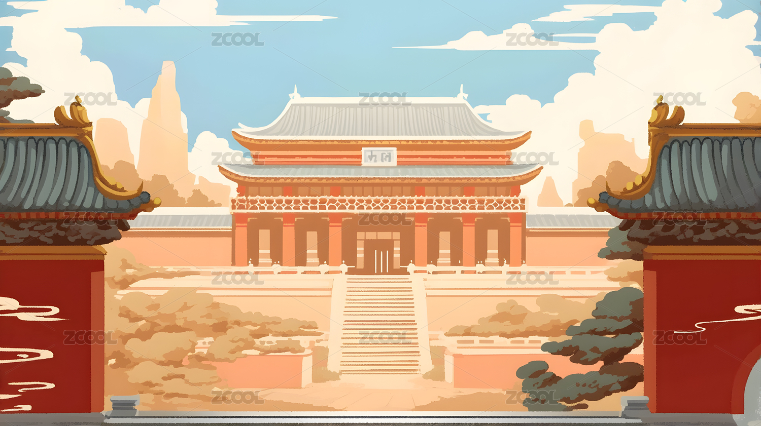 国风故宫建筑风景插画