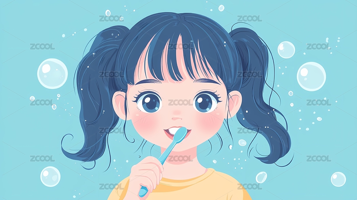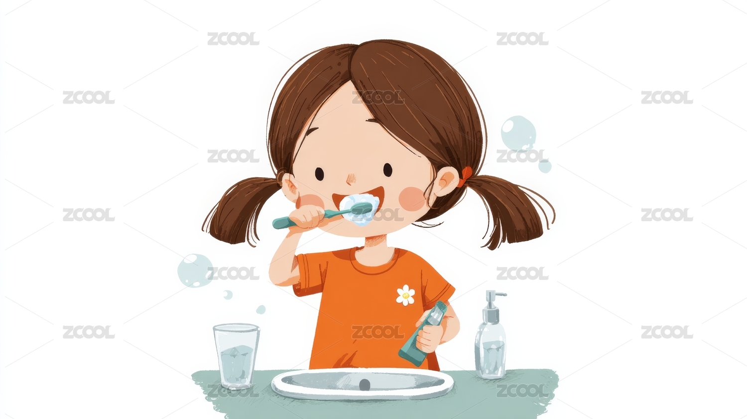 全国爱牙日小孩刷牙清洁口腔洗漱儿童插画