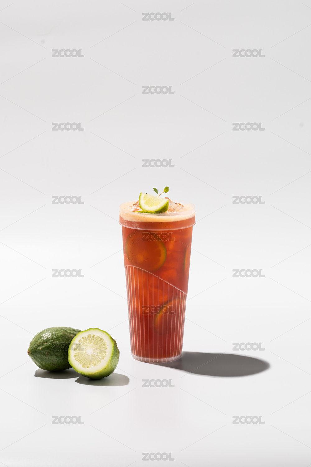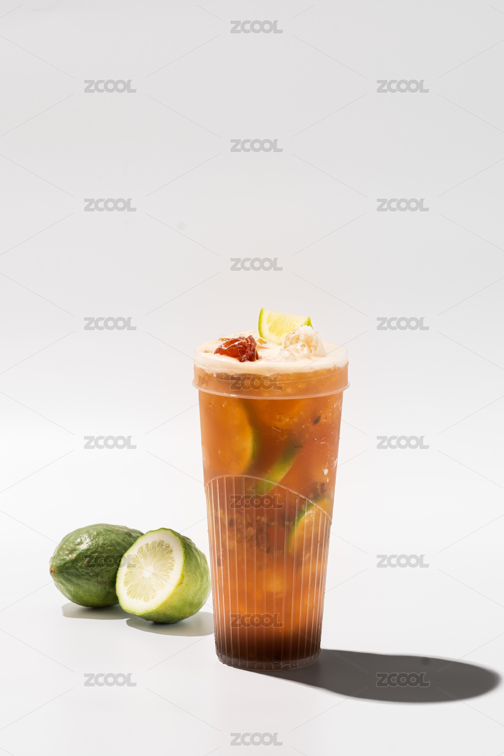 白色背景下的饮料特写镜头白底菠萝柠檬茶香