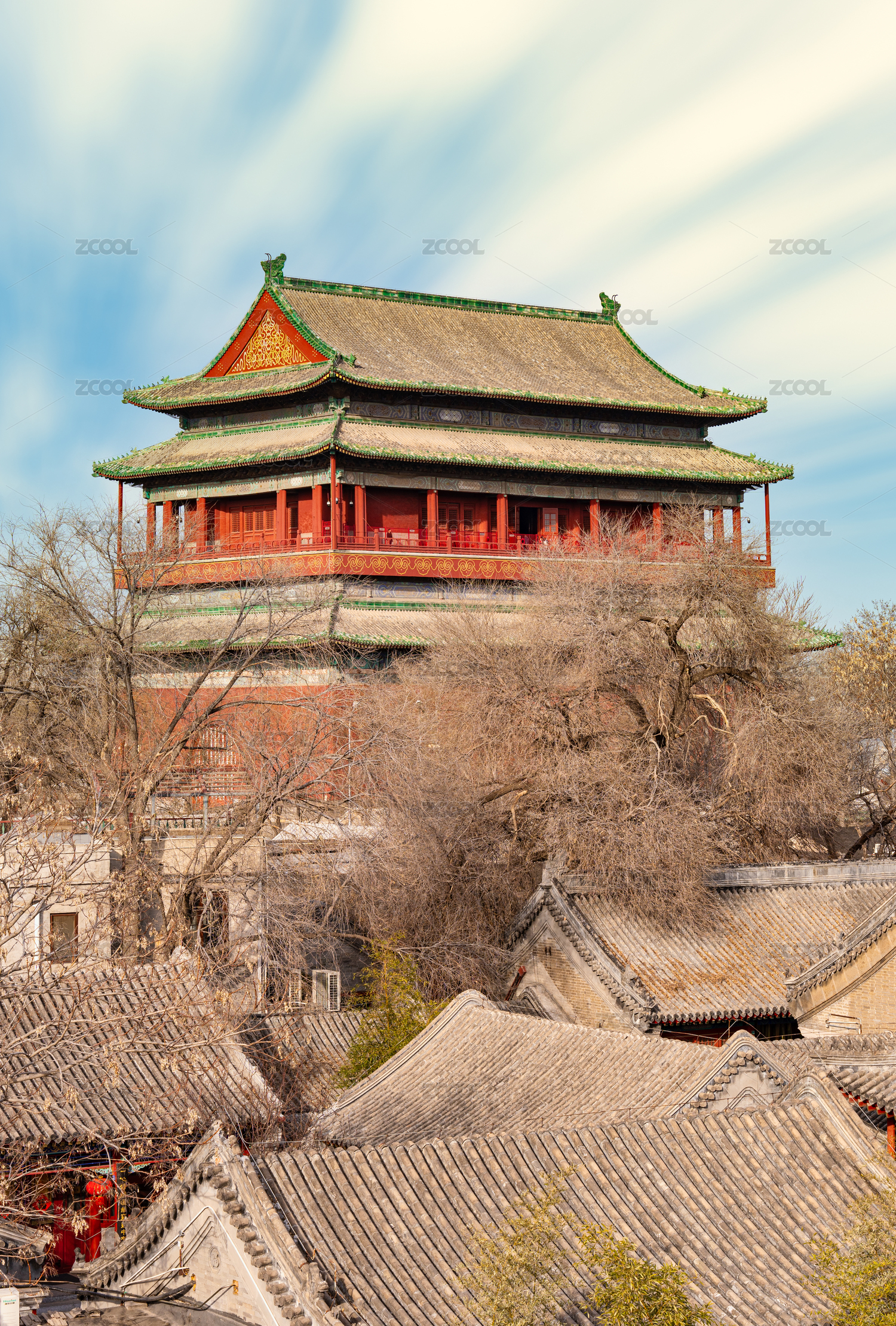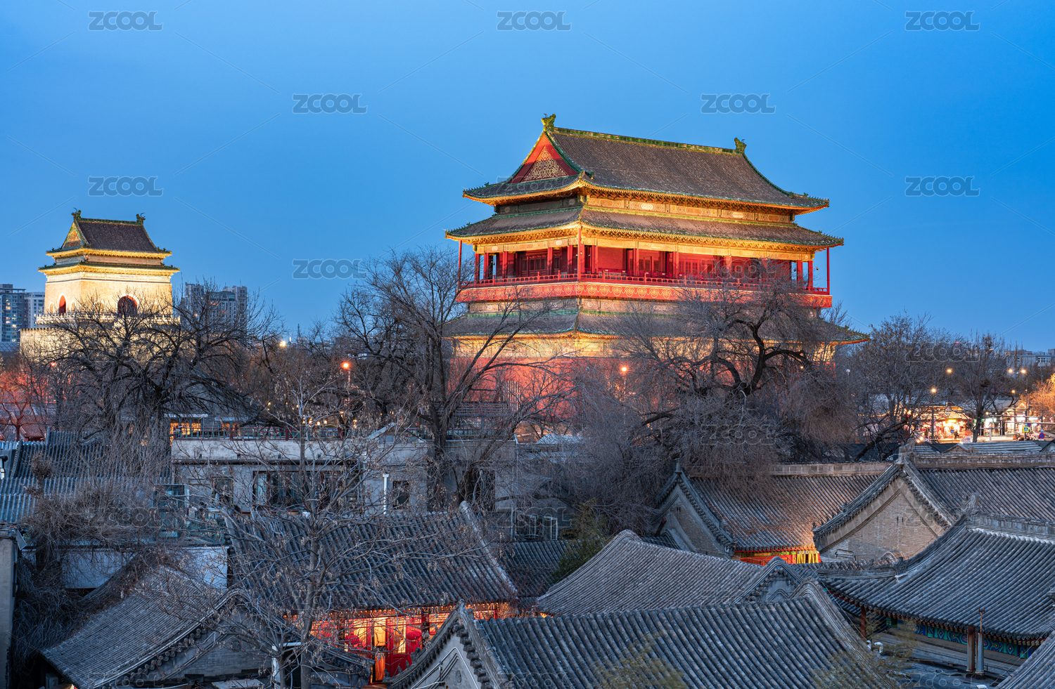 建筑,天空,日落,城市,屋顶,古建筑,晚上,旅游,北京,钟鼓楼