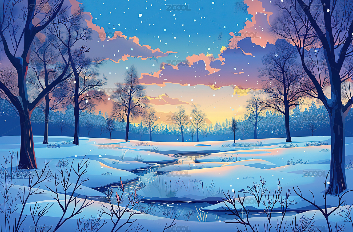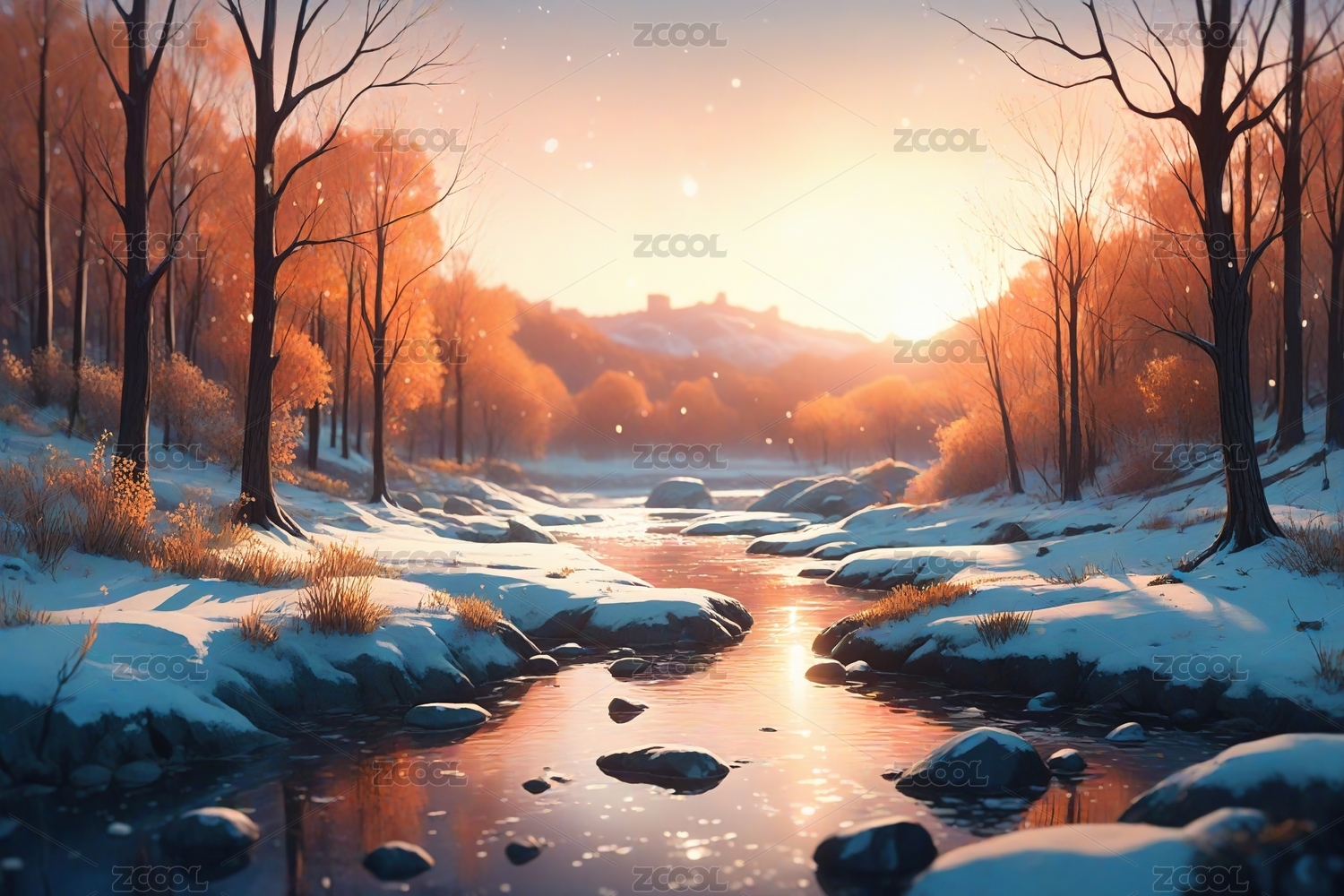 冬季雪景,自然雪景,树木河流,落雪树木,白雪覆盖