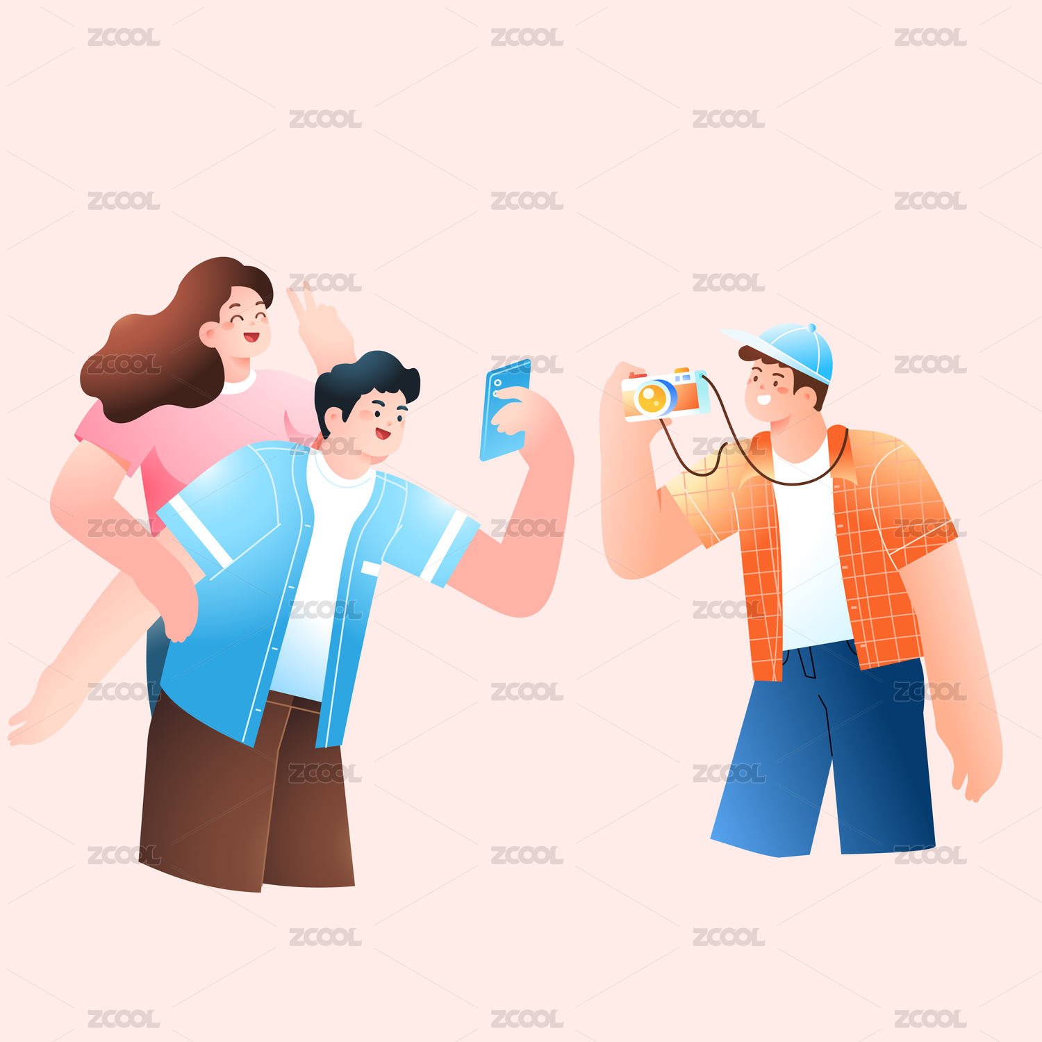 旅游拍照的人矢量插画