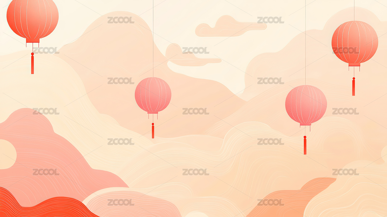 国潮风新年春节题材喜庆山水祥云插画背景插画