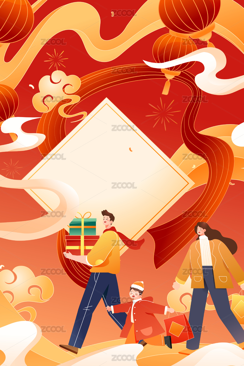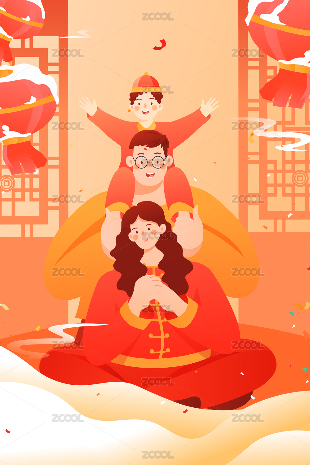 家人亲子过新年矢量插画