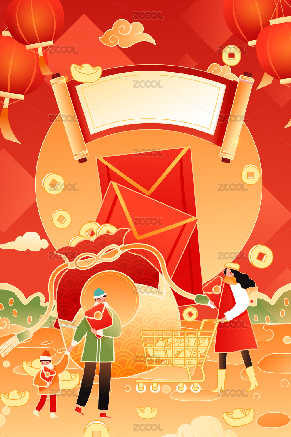 新年红包拜年插画