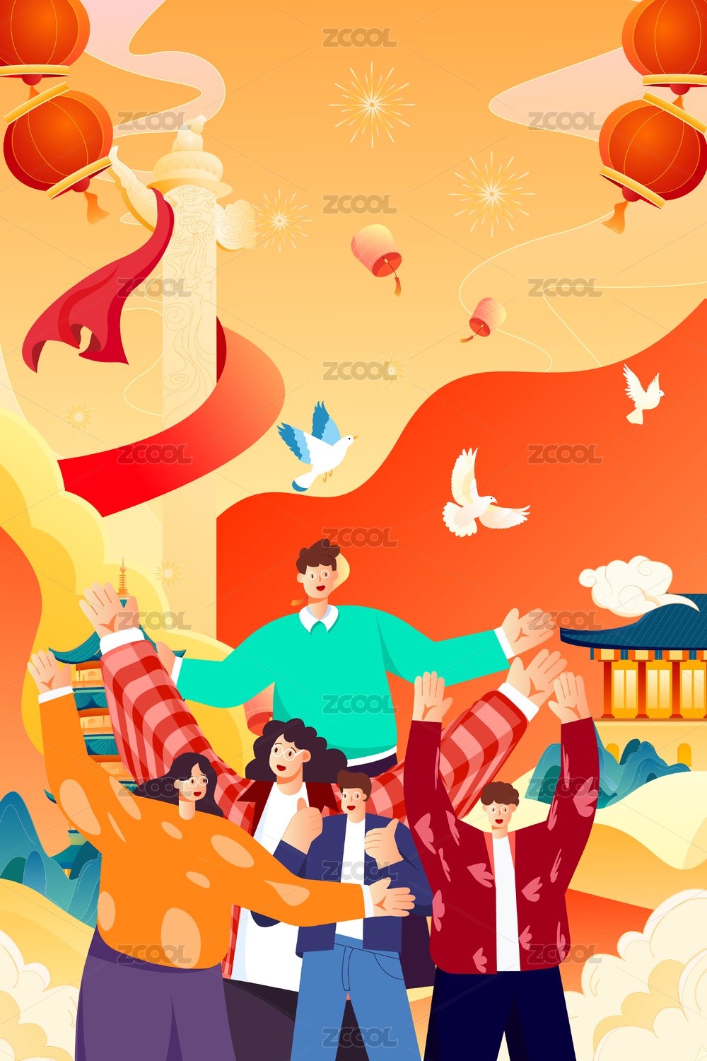 国庆节插画矢量图