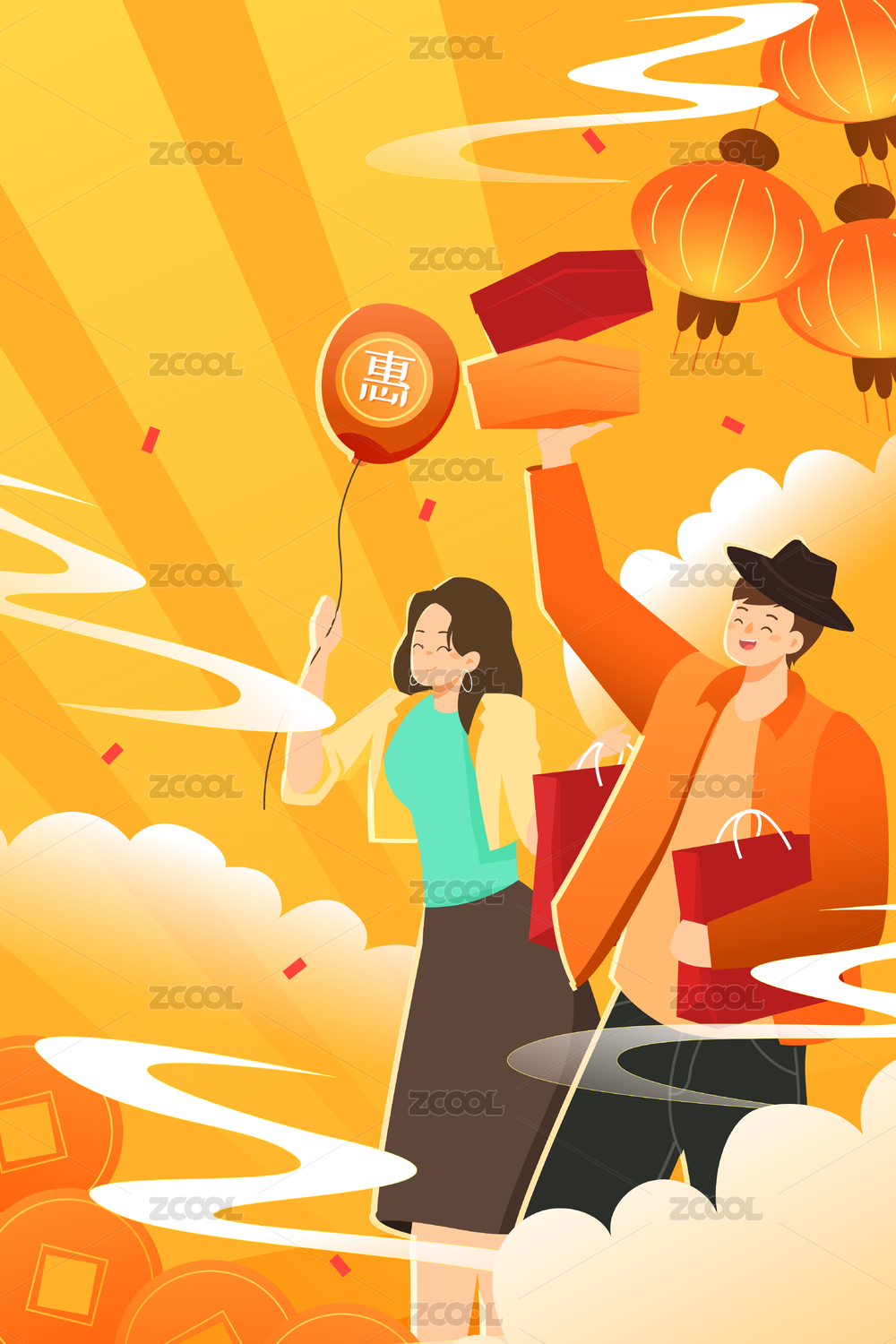 年货节春节送礼矢量插画