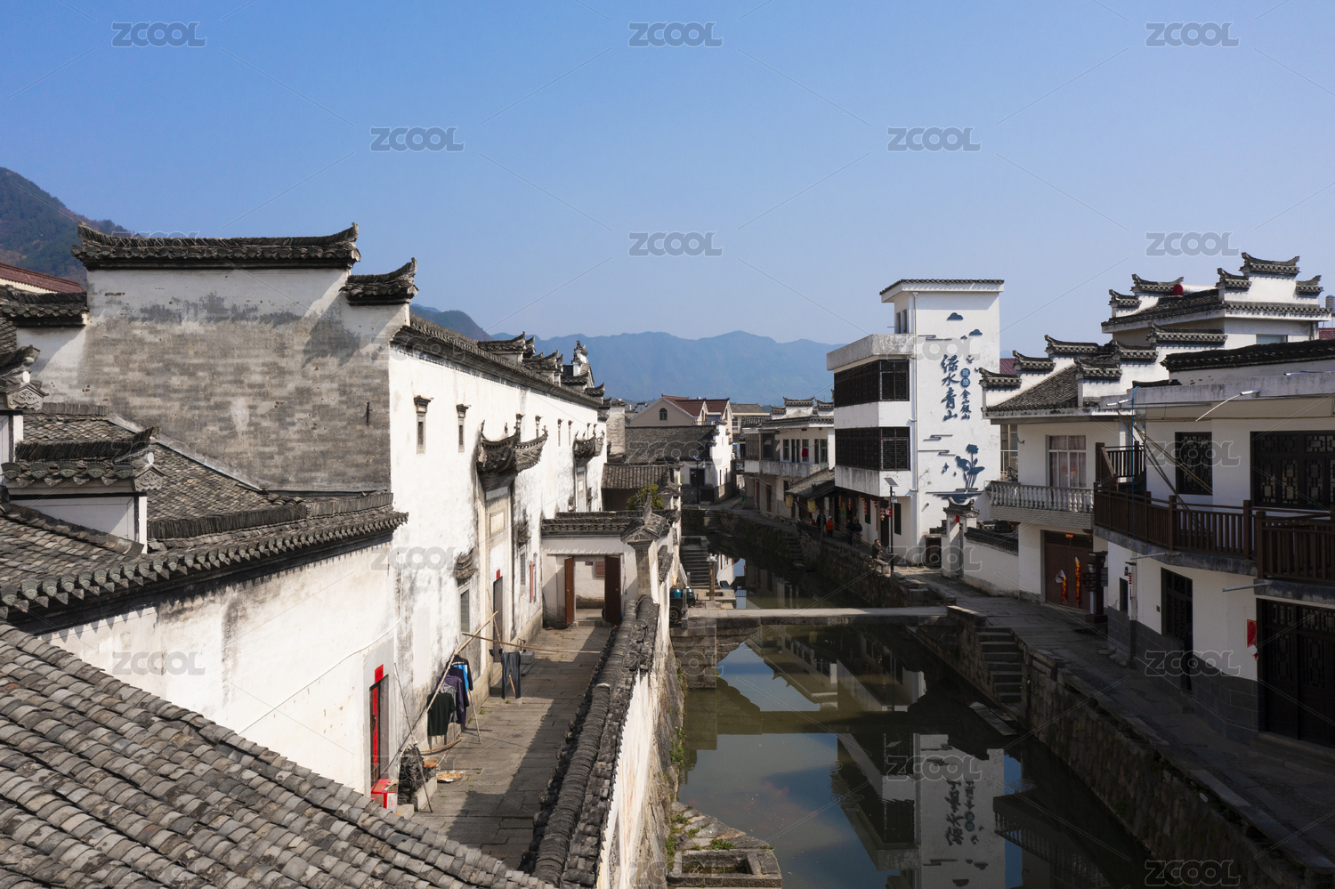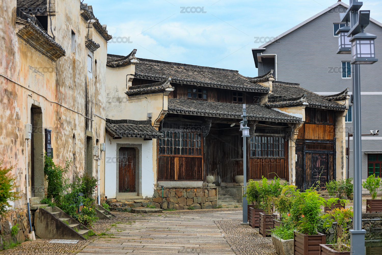 中国浙江杭州富阳孙权故里龙门古镇风光