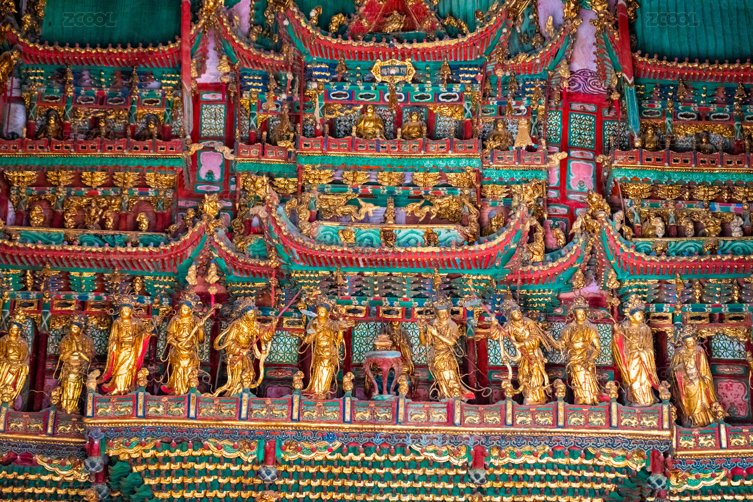 山西临汾隰县小西天内的明清贴金悬塑及彩绘