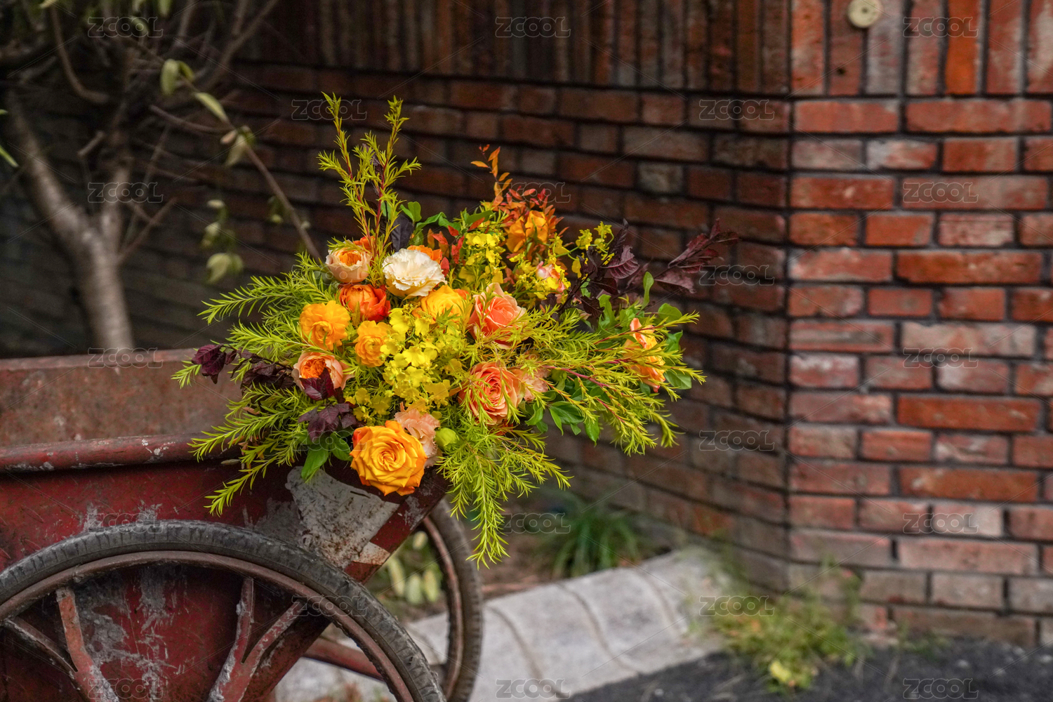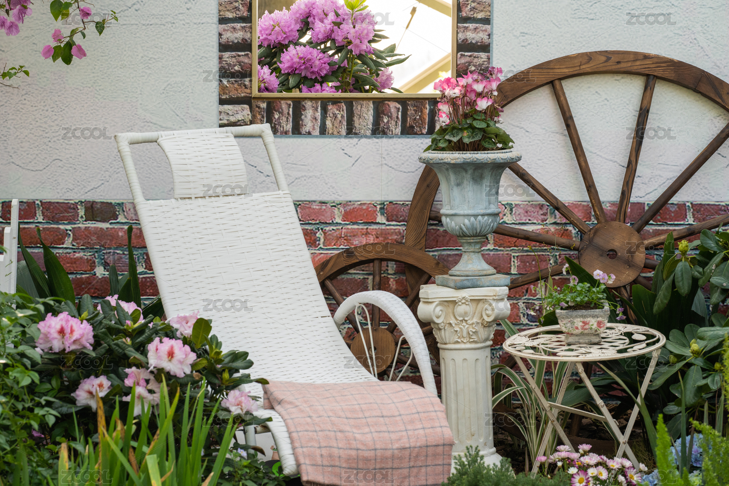 鲜花,干花,绿植,栅栏,小木桌,桌椅,小房子,怀旧,门窗,色彩