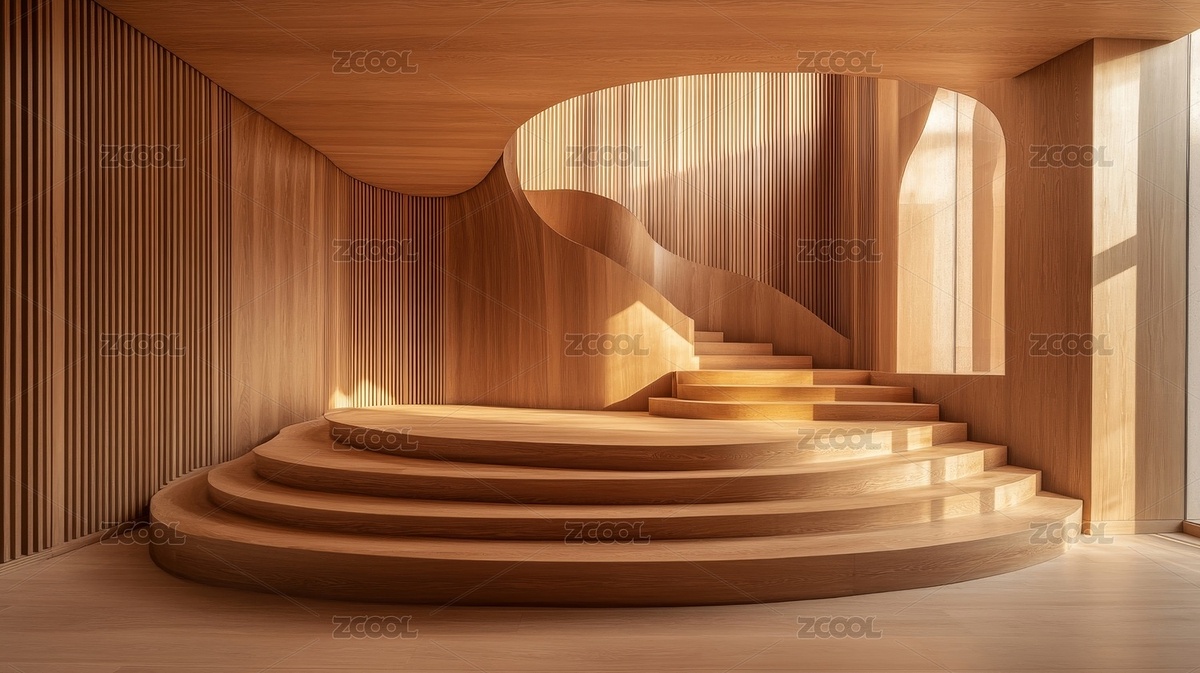温暖室内洒满阳光的电商木质展台美妆壁纸