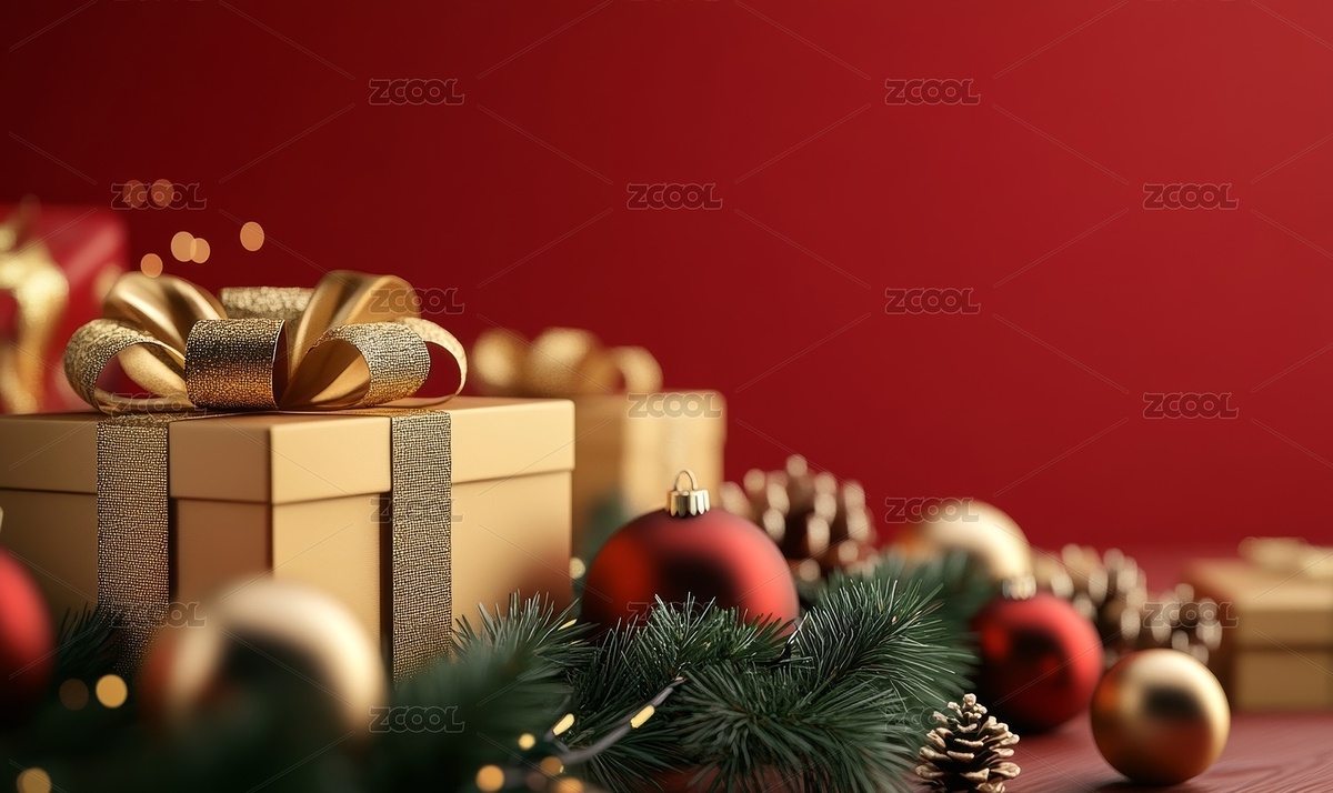 插图,红色,季节,假期,金色,卡片,快乐,冷杉,礼物,绿色