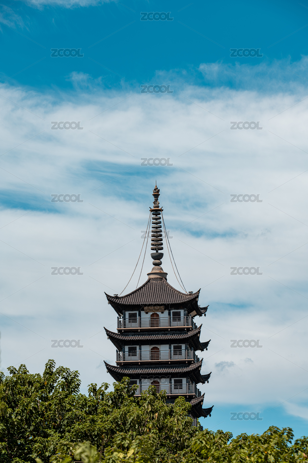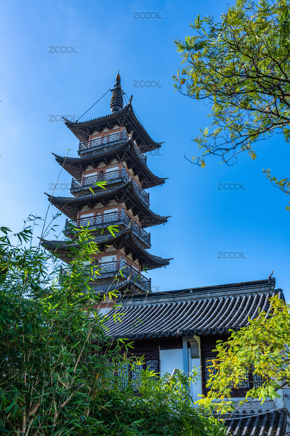 晴朗的午后,眺望扬州大明寺栖灵塔风景