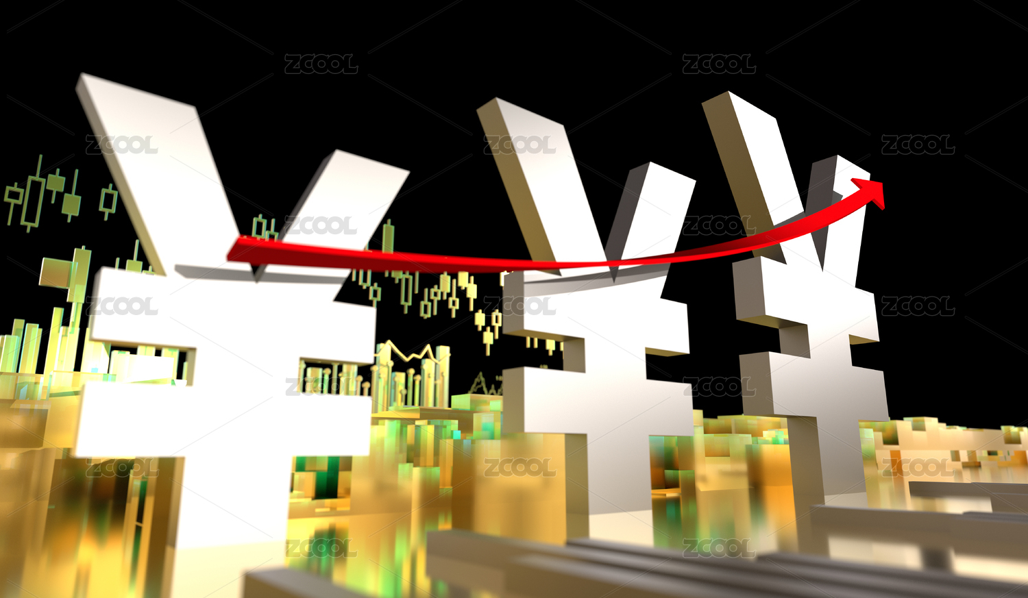 向上的箭头搭配着大量的的金币象征着金钱与商业的成功
