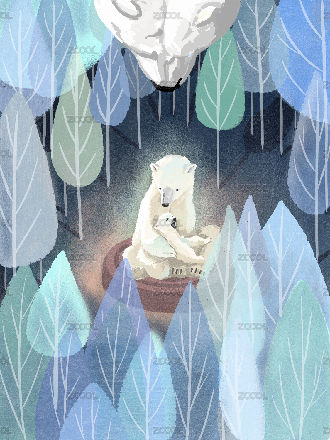 立冬,冬至,冬天,新年,森林,大熊,卡通,童话,浪漫,少女