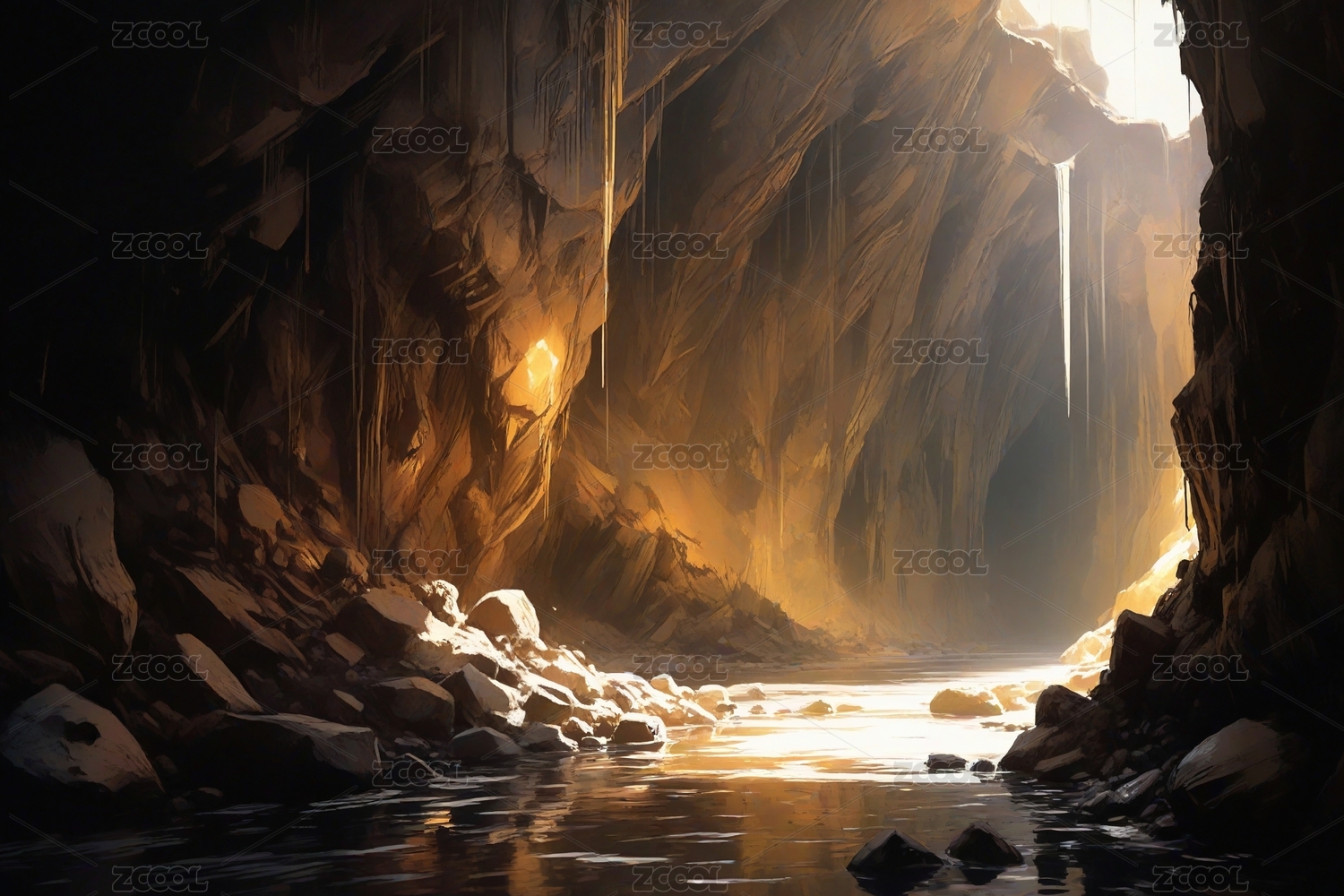 AIGC,虚拟,虚拟场景,3D,3D渲染,背景,岩石,昏暗,景深,自然