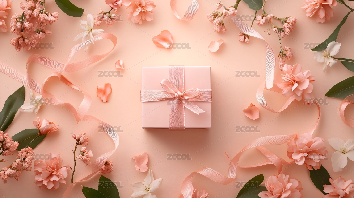 现代,绿色,背景,叶子,清新,花,促销,礼物,礼品,礼物盒