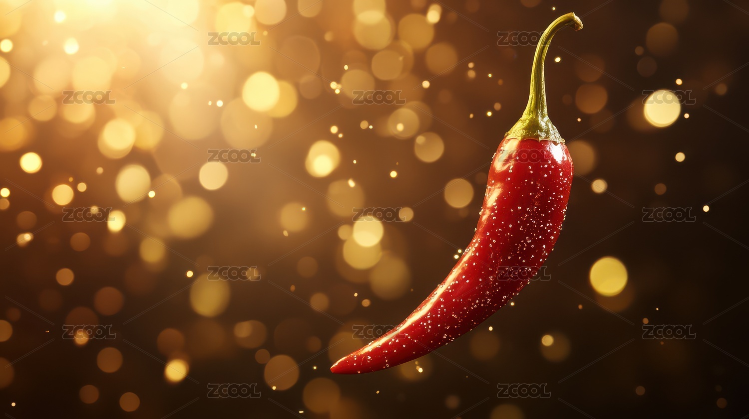 鲜艳红辣椒在金色光斑背景中闪耀