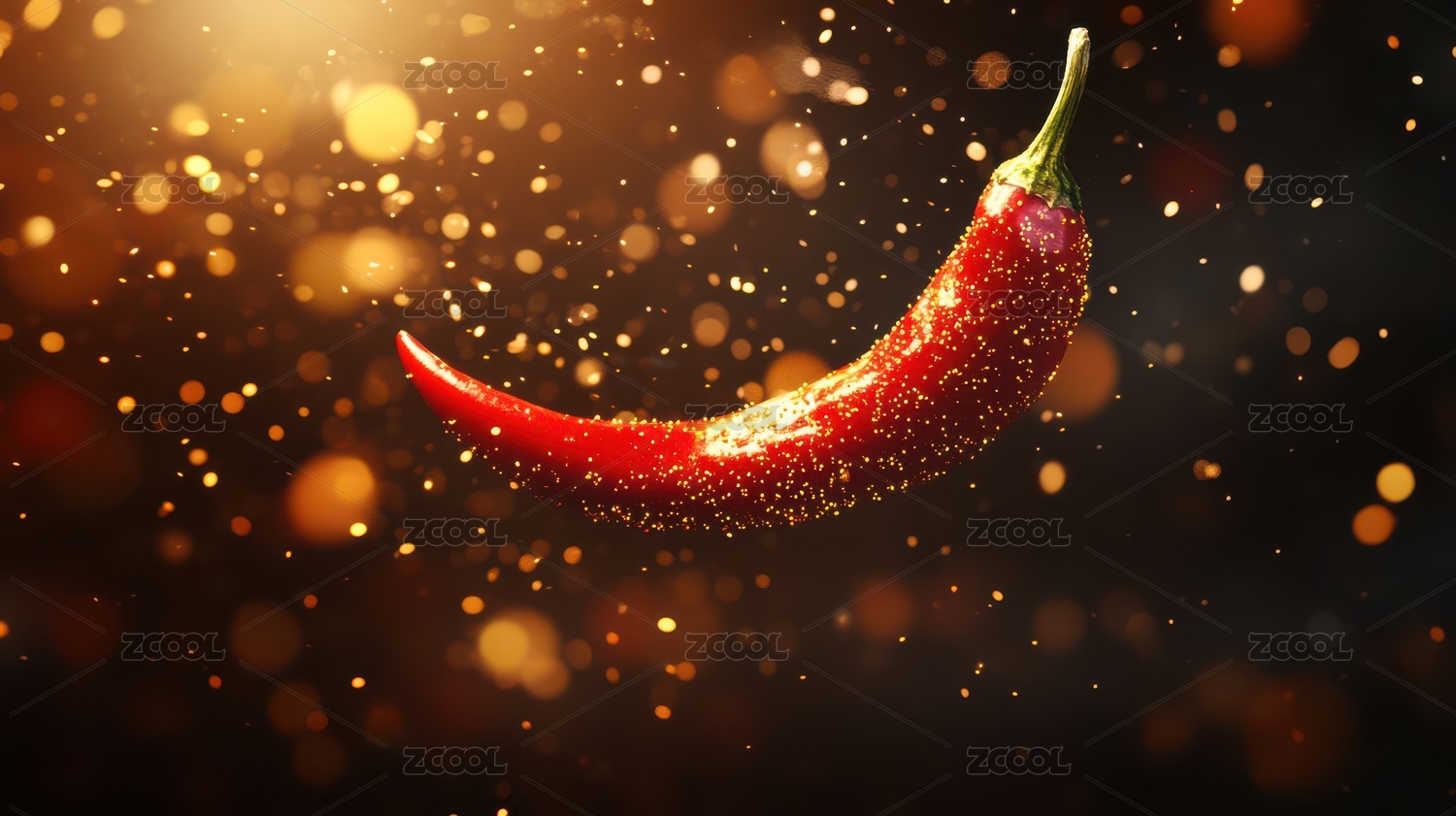 闪耀红椒在金光中悬浮