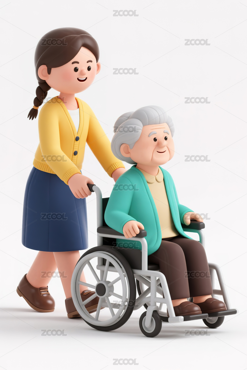 女孩,老人,轮椅,敬老,重阳节,AIGC202406