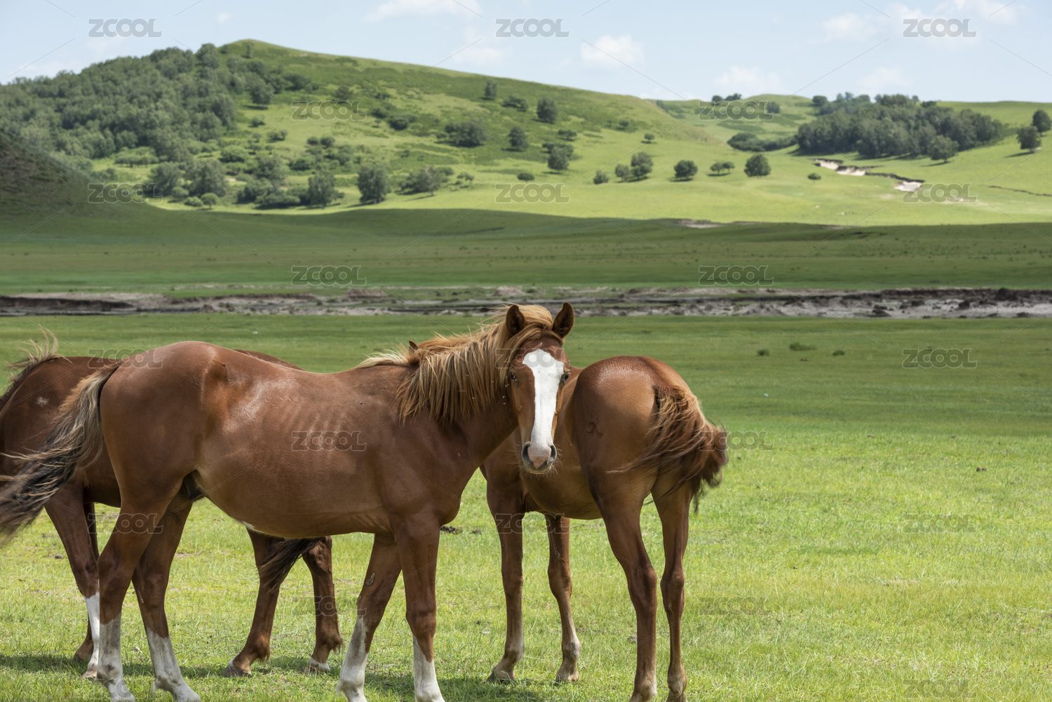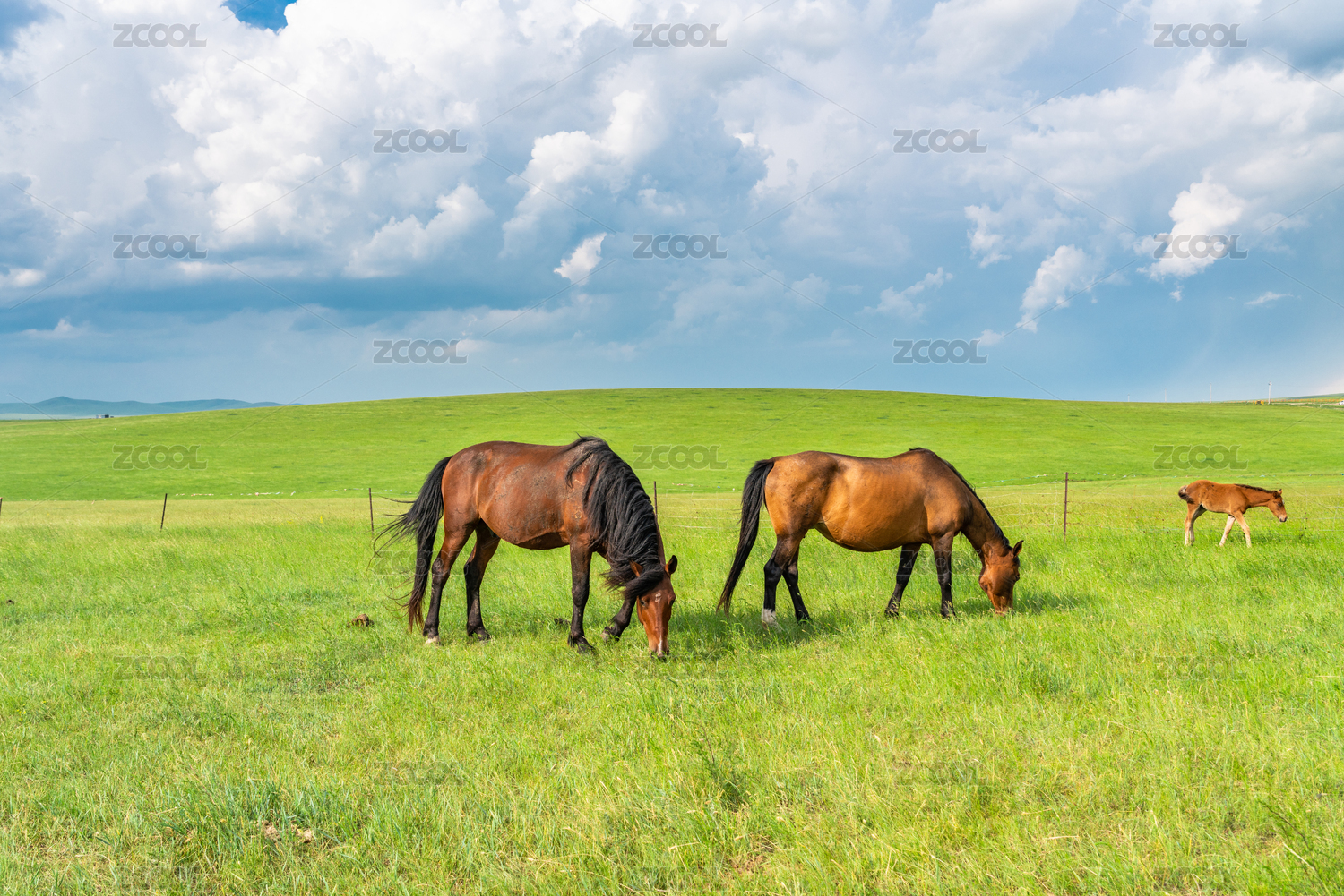 内蒙,呼伦贝尔,草原,蓝天,白云,绿草,草地,动物,马群,骏马