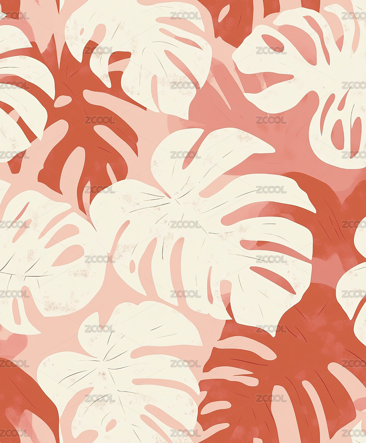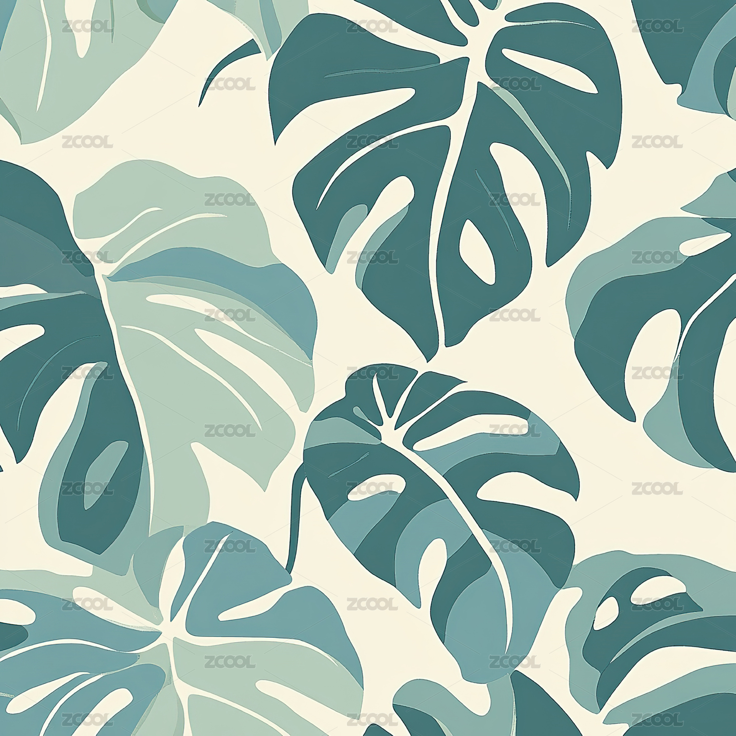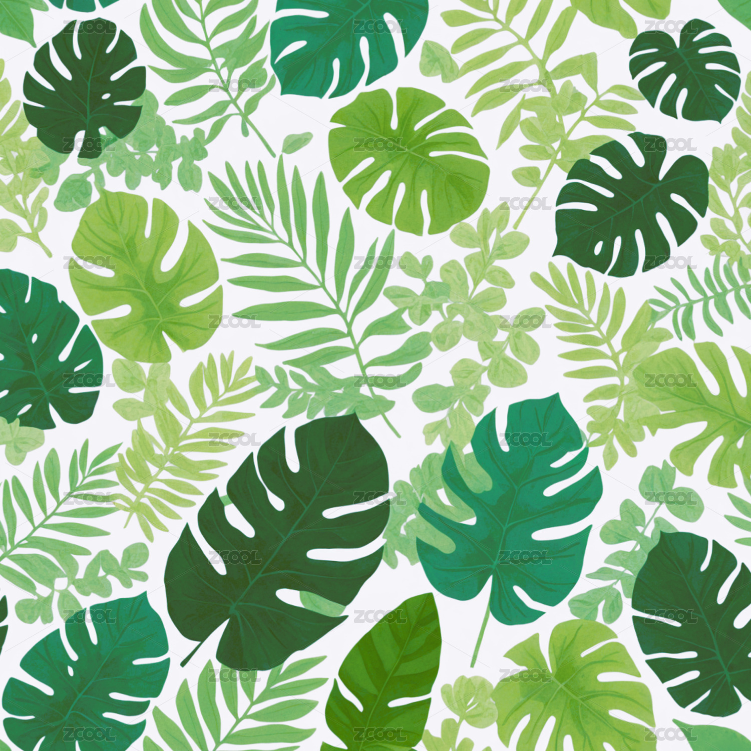 夏天彩色植物叶子四方连续循环无缝拼贴图案