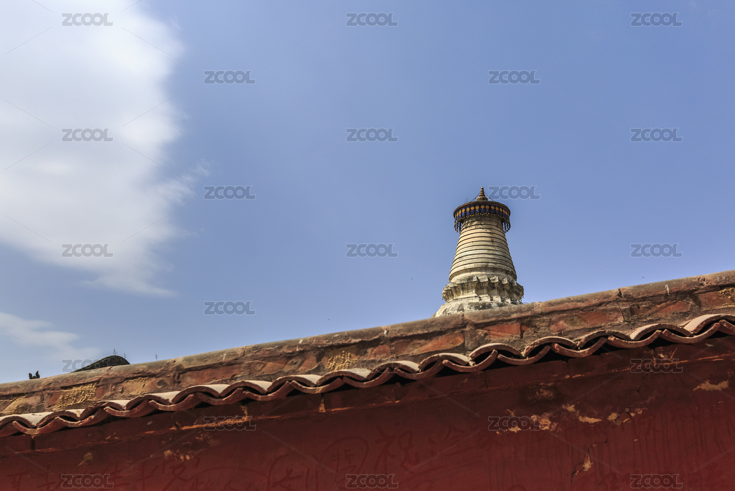 山西省,忻州,山西,五台山,红墙,白塔,佛塔,建筑,墙,古建筑