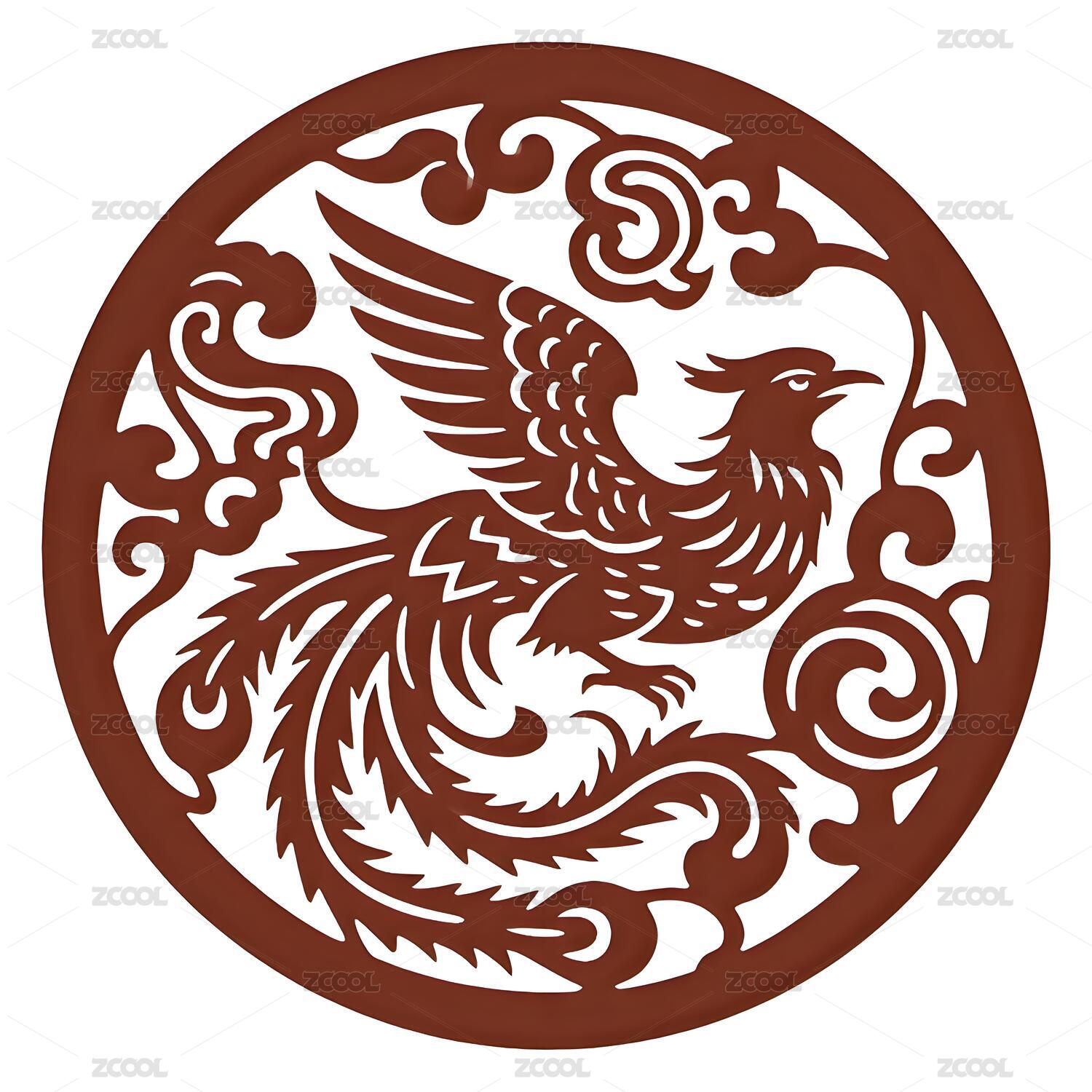 凤凰百鸟之王山海经中国神话故事矢量插画