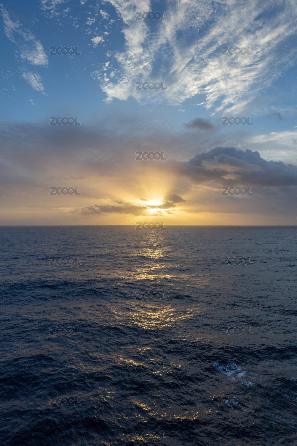 早晨辽阔的海面上彩霞满天太阳冉冉升起