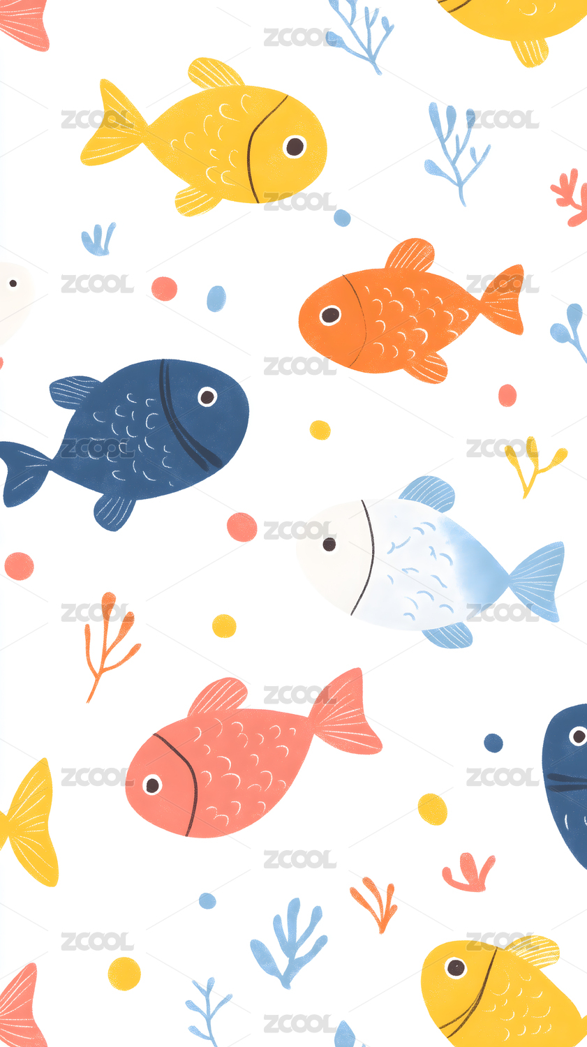 水彩小鱼无缝背景