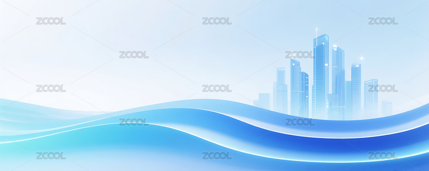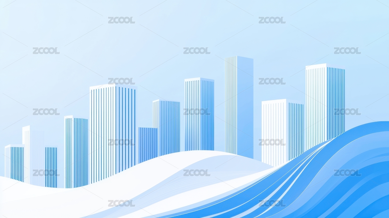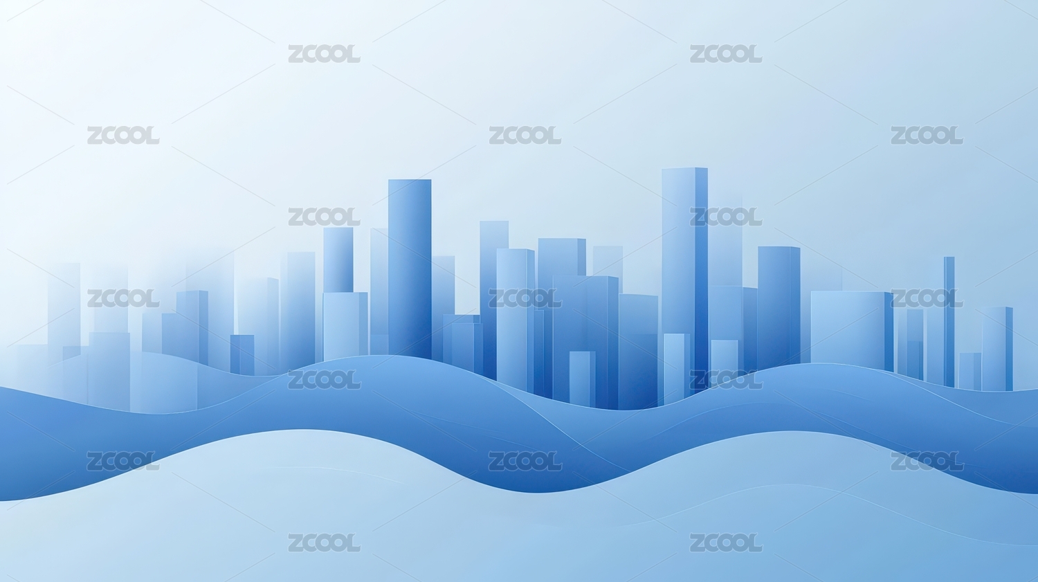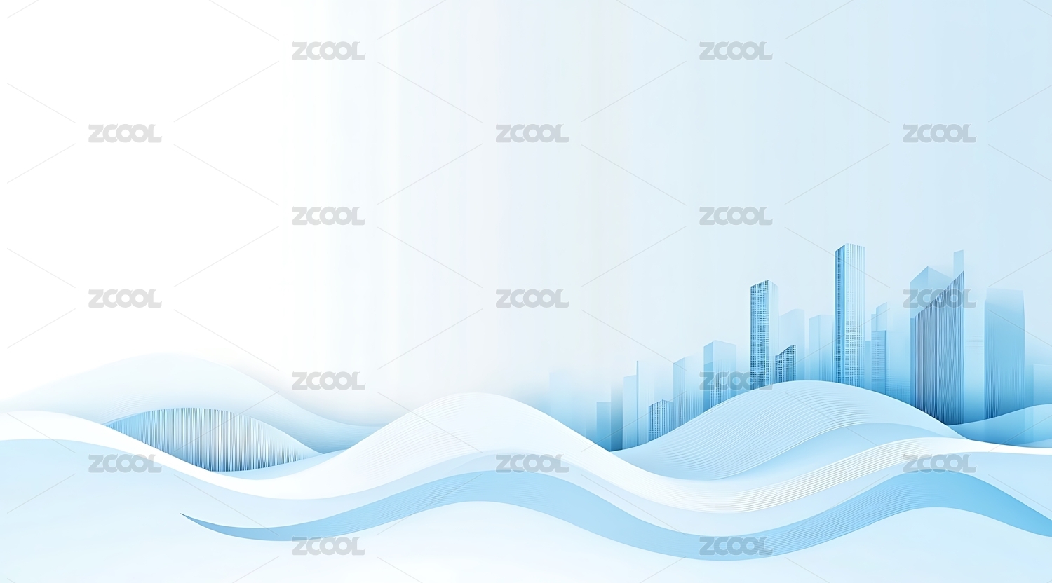 流畅的蓝色渐变波浪线条玻璃城市建筑