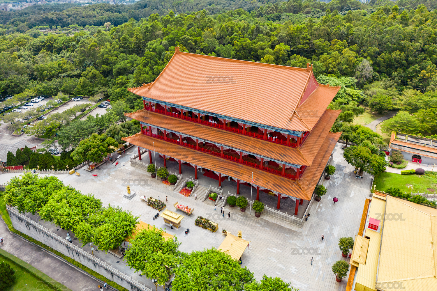 航拍中国福建厦门南普陀寺寺院建筑群及五老峰