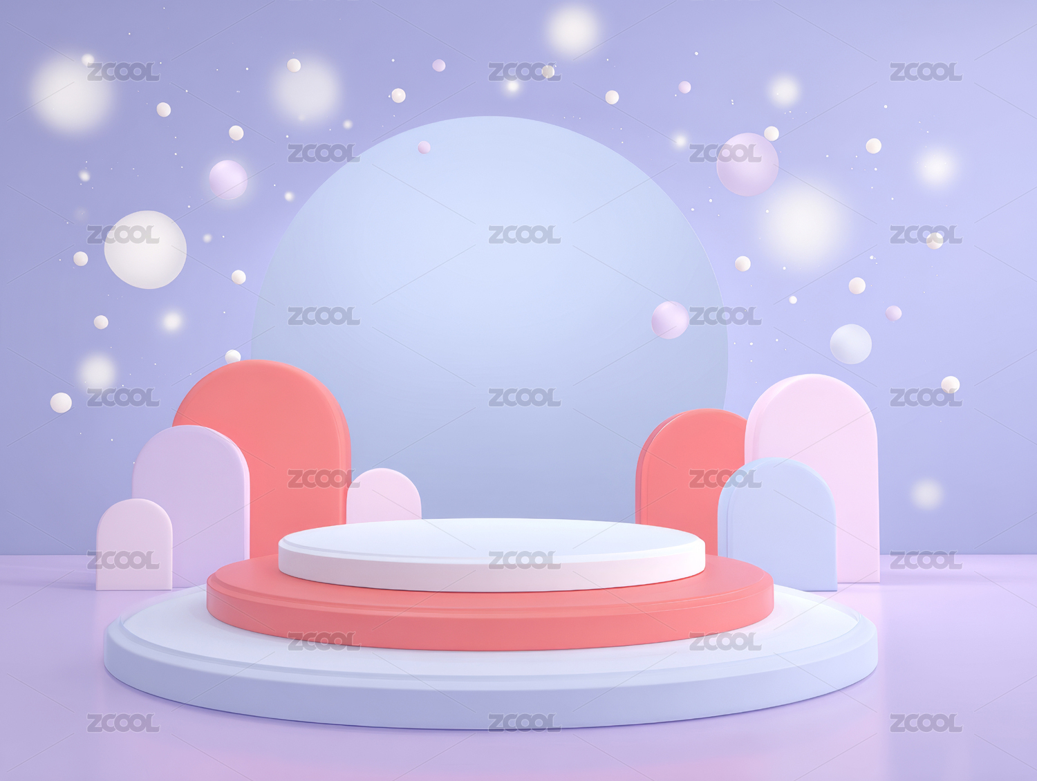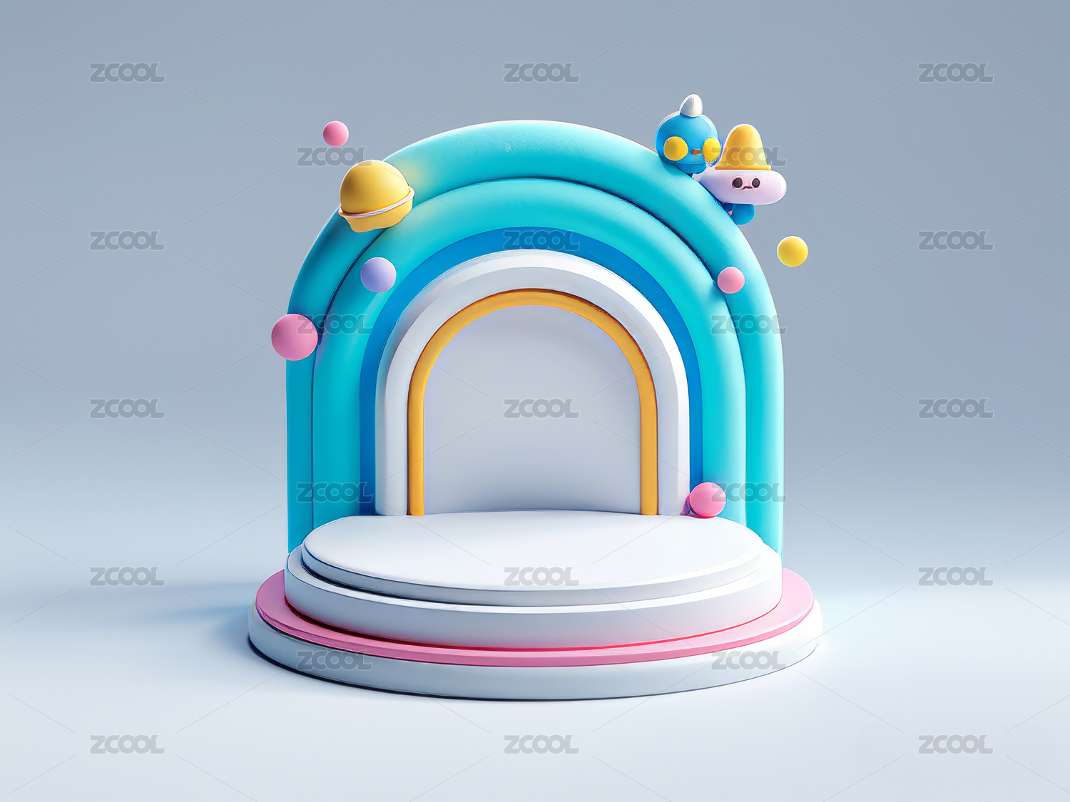 展示台,商品展示台,商务,展示,膨胀,极简,童话,草地,花,云朵