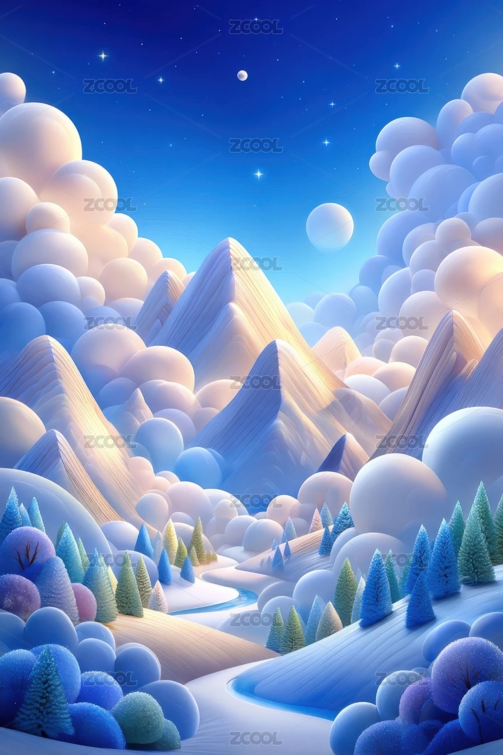 卡通风格的雪山场景