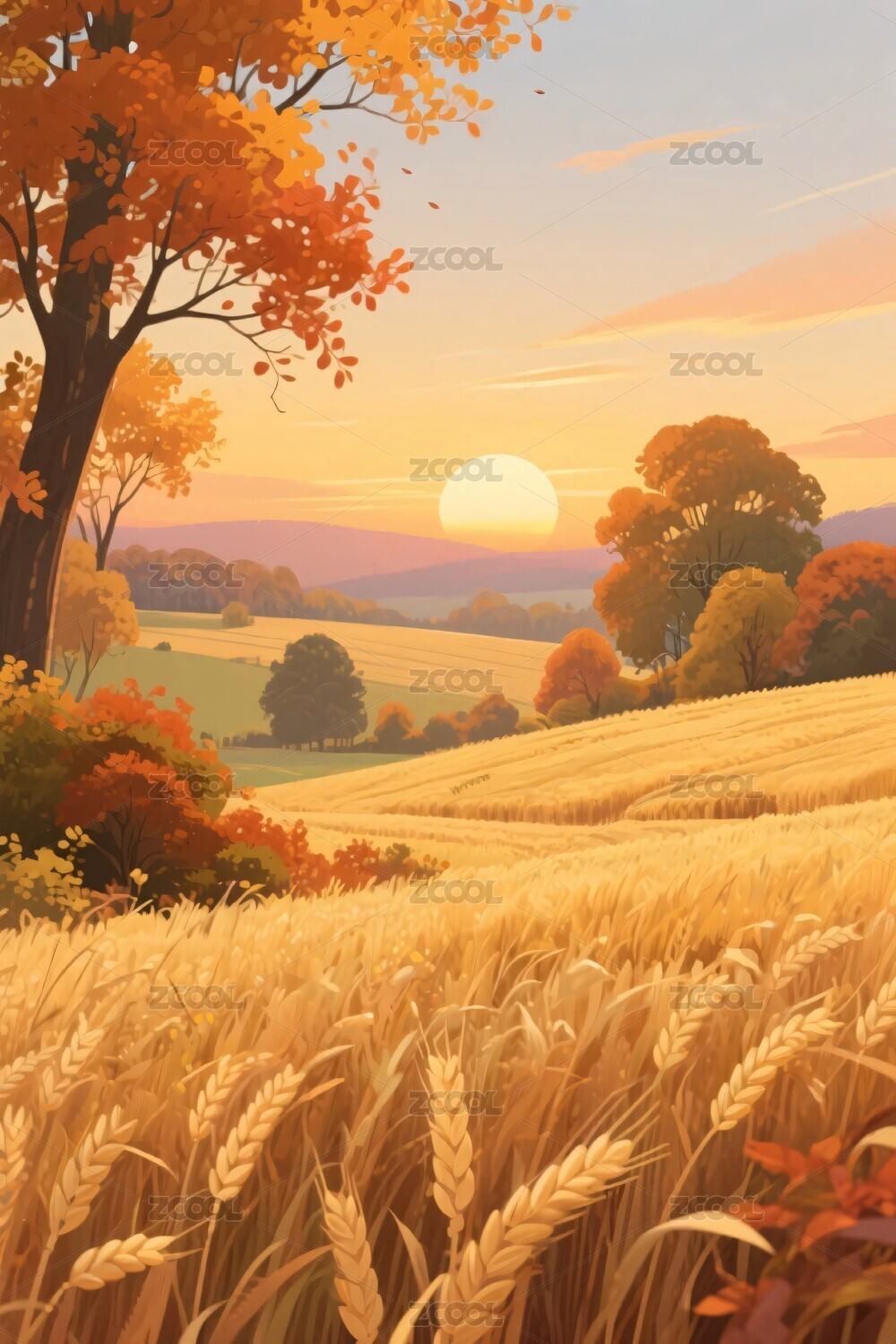 秋天秋季立秋秋分自然户外风景卡通漫画插画