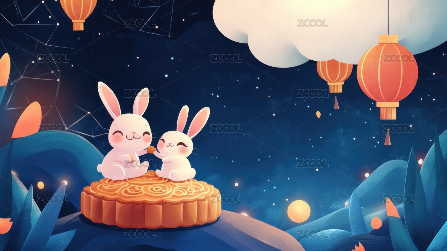 中秋,中秋节,赏月,嫦娥,玉兔,圆月,月亮,团圆,创造力,中国风