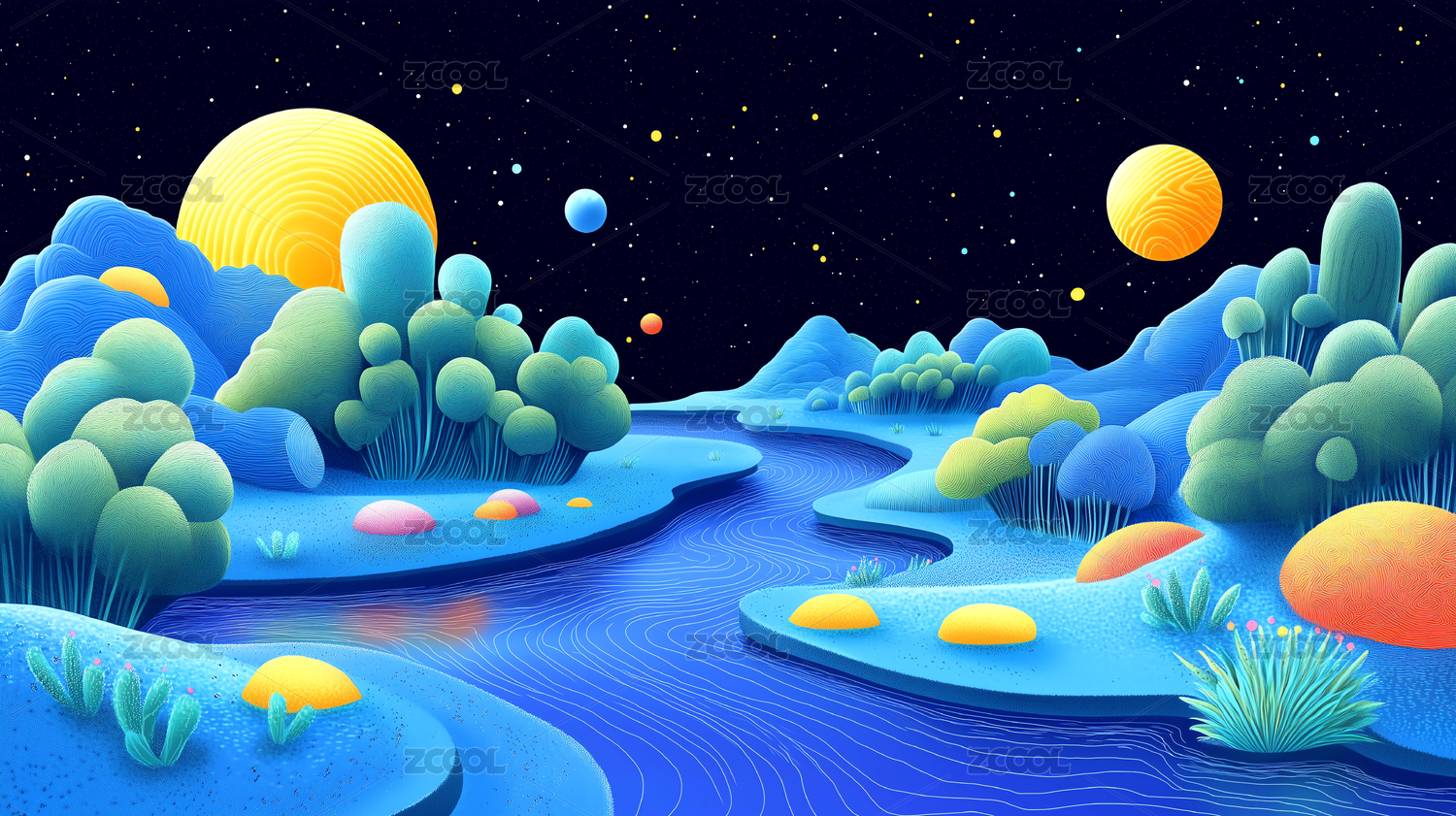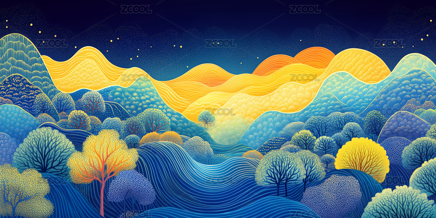 山水风景艺术插画