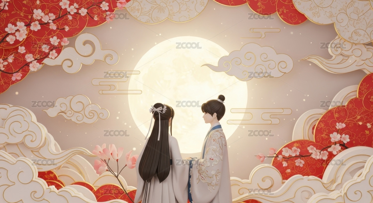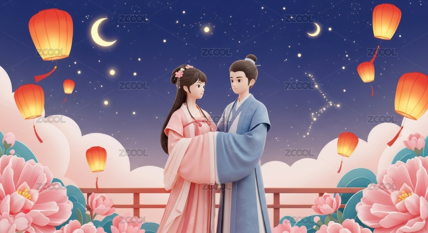 七夕节3D国风情侣场景