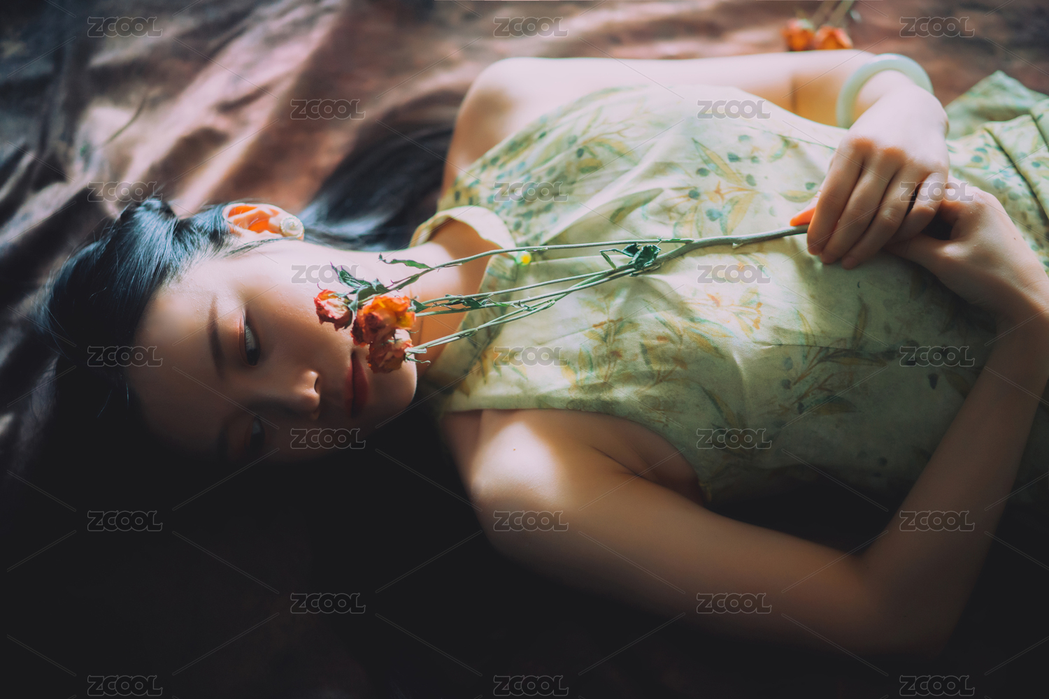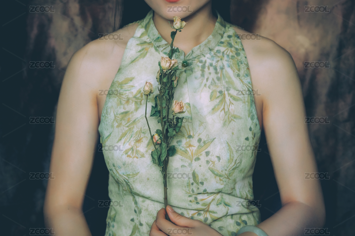 少女,女孩,蔷薇,鲜花,油画,布景,棚拍,旗袍,复古,怀旧