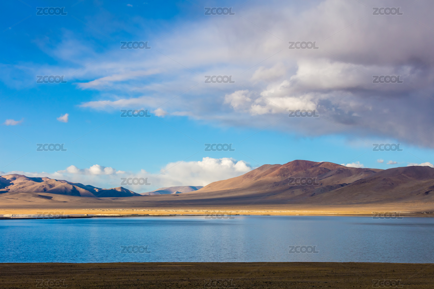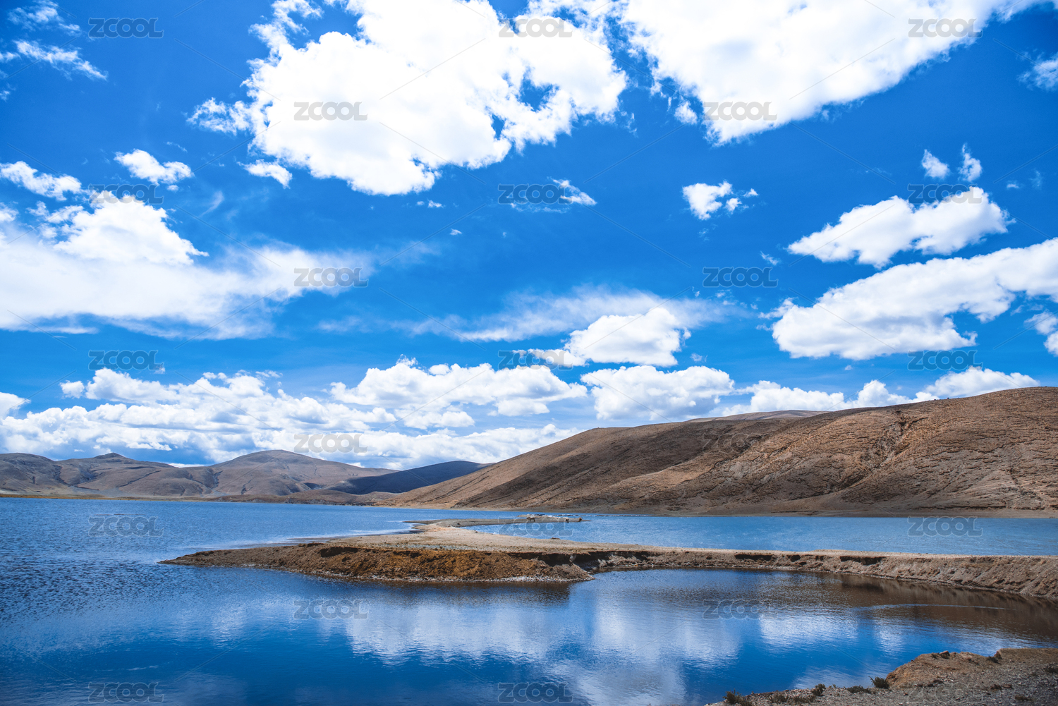 中国青藏高原美丽的蓝色湖泊与蓝天