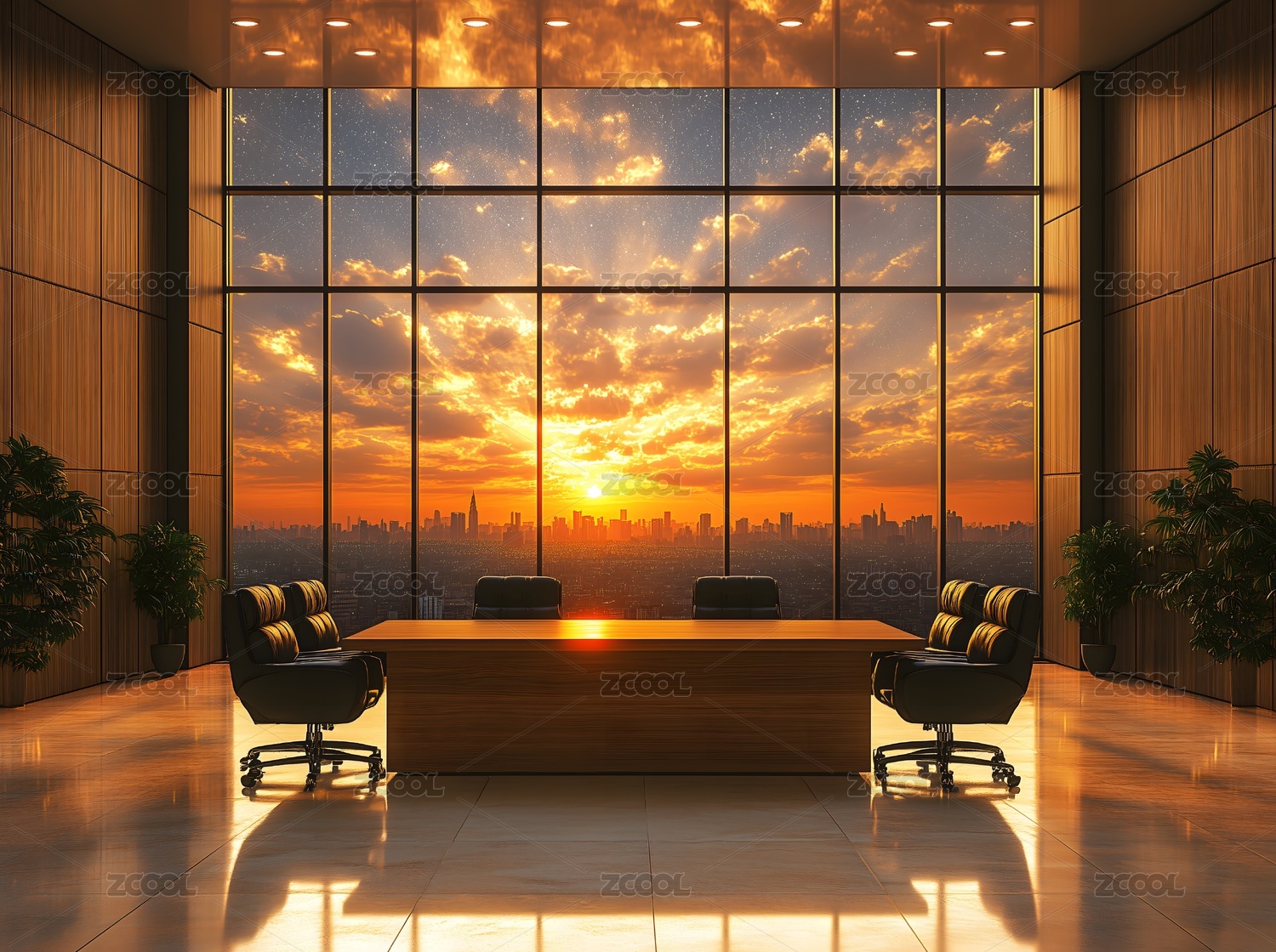 日落下的商务会议室