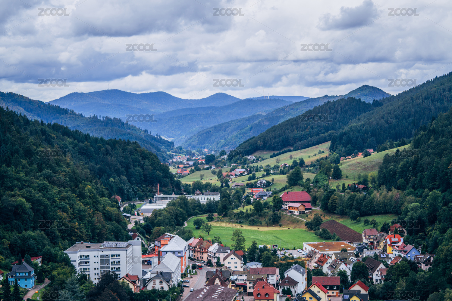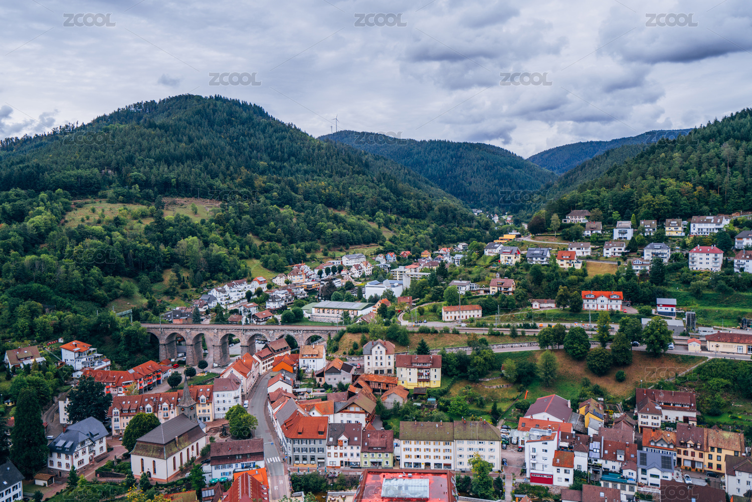 眺望欧洲黑森林山脉深处的美丽童话小镇