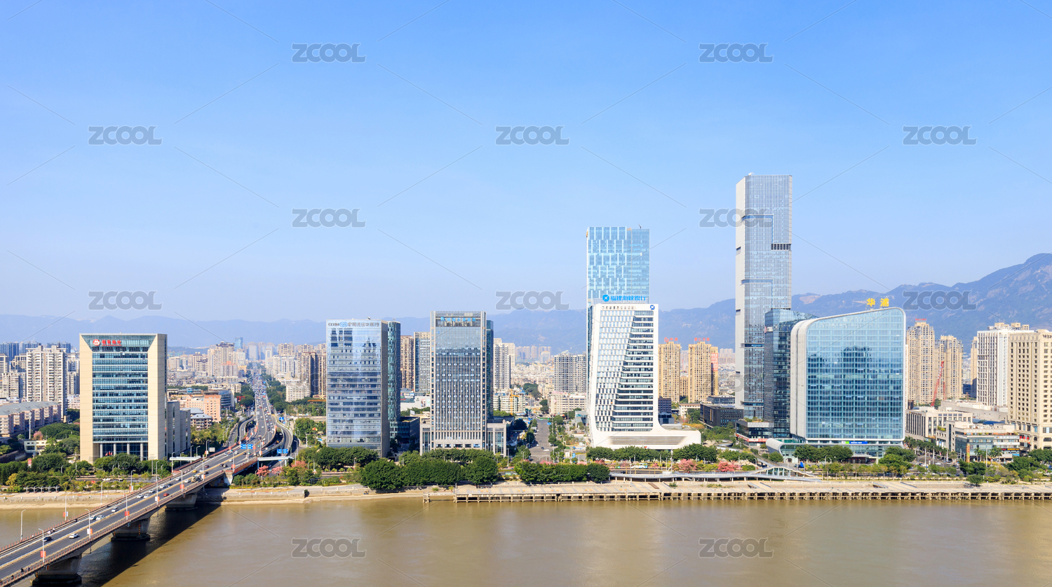 晴空下的中国福建福州台江金融商务区高楼建筑景观